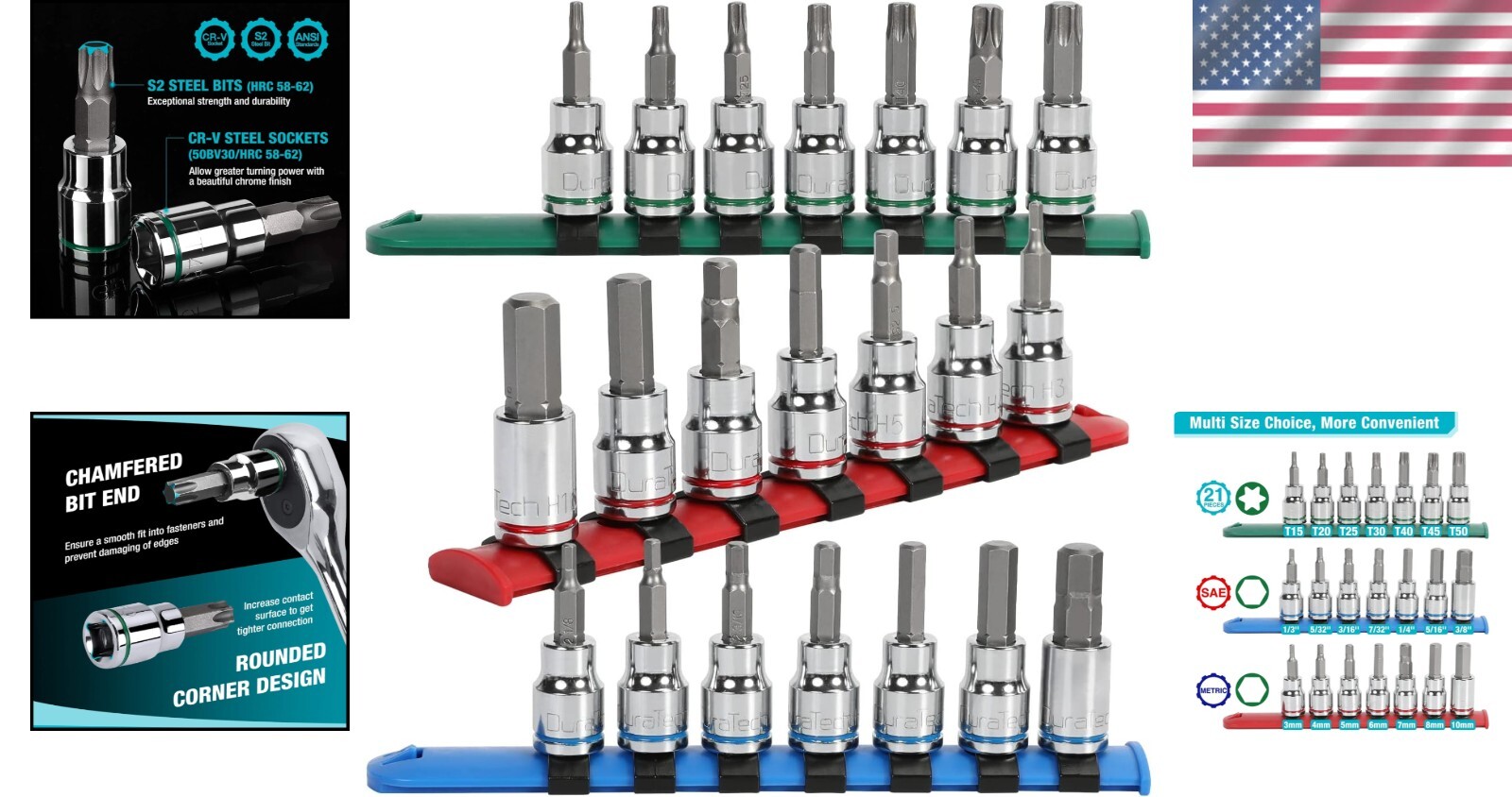 Professional 3/8'' Torx and Hex Bit Socket Set - Durable Chrome Plated Finish ‹ › ‹ › ‹ › ‹ › ‹ › ‹ › ‹ › ‹ › ‹ › Professional 3/8'' Torx and Hex Bit Socket Set Durable Chrome Plated Finish Key Features: Powerful Torque: Made from heat-treated chrome vanadium steel, these sockets deliver superior torque for enhanced turning power. Each piece is drop-forged for durability, while the chrome plating ensures rust resistance. Precision Bits: Each bit is crafted from tough S2 alloy steel, designed to resist wear and guarantee longevity. Sandblasting finish prevents rust and corrosion, while chamfered ends allow for smooth insertion onto fasteners, reducing edge damage. Convenience: Sizes are clearly stamped and color-coded for easy identification. This set comes organized on a plastic rail, allowing for effortless carry and storage. Simply pull sockets out vertically to avoid damaging the rail. Versatile Application: Ideal for use on cars, trucks, appliances, lawn equipment, and various machinery requiring 3/8’’ Drive Hex or Torx/Star Torque bits. The multiple size options provide exceptional convenience. Complete Set: Includes a comprehensive 21-piece collection consisting of: 7-piece 3/8’’ Drive Torx Bit Socket Set (T15, T20, T25, T30, T40, T45, T50) 7-piece Metric Hex Bit Socket Set (3, 4, 5, 6, 7, 8, 10mm) 7-piece SAE Hex Bit Socket Set (1/8, 5/32, 3/16, 7/32, 1/4, 5/16 and 3/8 inch) Attention to Detail: Ensure optimal performance with a 3/8" ratchet handle. Using incorrect sizes may lead to damage. Why Choose Our Socket Set? Crafted for professionals and enthusiasts alike, this 3/8'' Torx and Hex Bit Socket Set combines durability, precision, and convenience in one remarkable package. Whether you're tackling intricate automotive repairs or standard household tasks, each piece has been thoughtfully designed to minimize wear and maximize efficiency. Invest in a socket set that guarantees reliability with every use – elevate your toolkit today! Shipping Free & Fast Shipping - We offer free shipping to most of the USA with a normal delivery time of 3-7 days. However, due to the current situation, additional delivery time (up to 3 weeks) may be required for some items. Alternative Carriers - We may use alternative carriers (e.g. USPS, FedEx, UPS, etc.) to ensure your package arrives safely and on time. Due to the use of multiple carriers, we are unable to provide a tracking number automatically. Handling Time - Orders are processed and shipped within 1-2 business days of receiving cleared payment. Shipping Restrictions - Shipping to Alaska, Hawaii, Puerto Rico, Guam, and other US territories may incur shipping charges or delivery restrictions. Please contact us before ordering, or your order can be refunded/cancelled. State Restrictions - There may be restrictions based on your state of purchase. For example, certain items may not be shipped to California due to state regulations. Contact for Tracking Updates - If you require tracking updates or have any concerns about the delivery of your order, please feel free to contact us, and we will be happy to assist you. Return 30-Day Hassle-Free Returns - We want you to be completely satisfied with your purchase. If you are not, you can return the item within 30 days of receiving it for a full refund or exchange. Easy Return Process - To start a return, simply contact us and we will provide you with a prepaid return shipping label and detailed instructions. Restocking Fee - There are no restocking fees for returns. However, the buyer is responsible for return shipping costs if the return is not due to a seller's error. Refund Processing Time - Refunds will be processed within 5 business days of receiving the returned item in its condition. Payment We accept all major credit cards, PayPal, and Apple Pay for your convenience. Your payment information is secure and encrypted to ensure a safe and seamless transaction. Please complete your payment within 3 days of purchase to avoid any delays in shipping. Feedback Your feedback is extremely important to us. We strive to provide the best products and customer service possible. If you are satisfied with your purchase, please take a moment to leave us a positive review. If you have any concerns or issues with your order, please contact us before leaving negative feedback. We are committed to resolving any problems and ensuring your satisfaction. Contact Us If you have any questions or concerns, please feel free to out to our customer support team. You can contact us through the eBay messaging system. We are available Monday to Friday, 9:00 am to 5:00 pm EST, and we will do our best to respond to your inquiry within 24 hours. Buy it now and enjoy a pleasant shopping experience! Manufacturer Part Number: Details In Description Size: 21pcs 3/8" Bit Socket Set Number of Pieces: 21