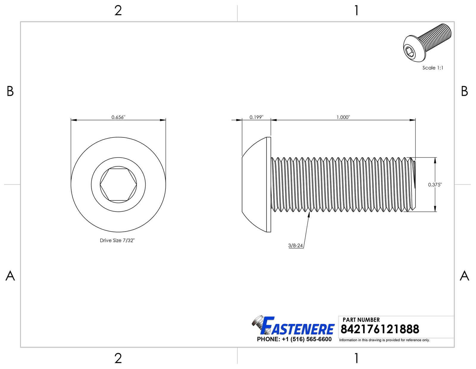 3/8-24 x 1" Button Head Socket Cap Screws Black Oxide Alloy Steel Qty 500 General Product Information Head Style : Button Drive Style : Allen Hex Key Drive Size : 7/32" Thread : 3/8-24 Length : 1" Quantity of Fasteners in Package : 500 Material Type : Alloy Steel Grade Rating : 8 Detailed Product Information: Head Diameter : Head Height : 0.199" Thread Diameter : 0.375" Threads Per Inch (TPI) : 24 Coarse or Fine Thread : Fine Thread Coverage : Full Thread Thread Length : 1.00 Key Notes: Button socket cap screws have a wide bearing surface and high tensile strength but are low profile allowing for clearance in tight spaces where there is not sufficient space for wrenches or sockets button head cap screw is recommended for lighter fastening operations and is not suggested for use in critical high strength applications where socket head cap screws should normally be used Black oxide is not a coating but a surface chemical conversion process that offers a mild corrosion resistance Fastenere black oxide button head socket cap screws are treated with a heavy water displacing oil that coats the fastener offering a greater level of corrosion resistance than most other black oxide fasteners These button cap screws are a grade 8 equivalent offering a high tensile and yield strength These fasteners have a machined thread pattern of 3/8-24 which is apart of the unified thread system Shipping: All orders placed before 3:30 pm EST Will Ship Same Day Tracking is provided on ALL Orders Priority Mail Shipping service is offered at a discount of only $3.95 UPS Ground UPS Next Day Air is available, Please inquire for pricing Returns : ALL returns are accepted if returned within 60 days. Money Back or exchange guaranteed. NO Restocking Fees. For YOU, we constantly strive to find ways of improving our performance.