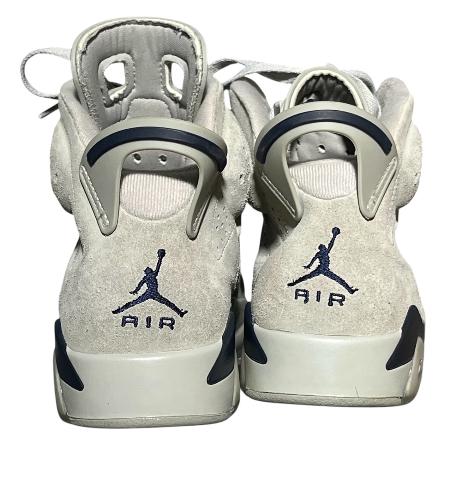 The Nike Air Jordan 6 Retro "Midnight Navy" 2022 in Gray Suede, size 9 US, is a stylish and comfortable sneaker designed for men. This high-top shoe features a buckle closure, adjustable fit, and cork outsole for added durability. The animal print pattern and retro theme give it a unique and fashionable look, perfect for both activewear and casual occasions. With 3M Thinsulate Insulation, it also provides warmth for all seasons. Representing the iconic Air Jordan line from Nike, this shoe is a must-have for any sneakerhead looking to add a classic to their collection.