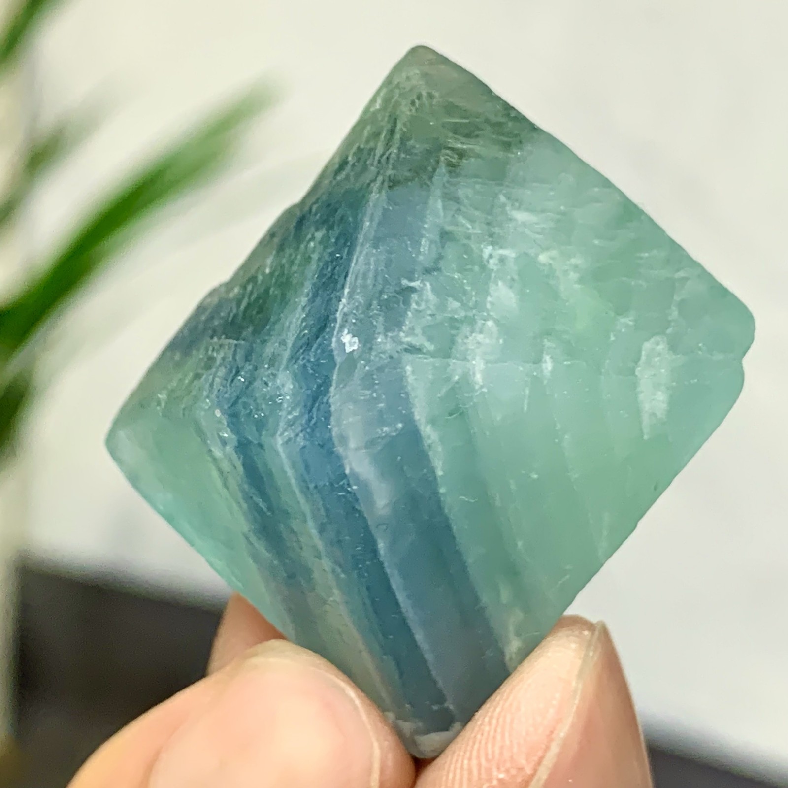 35G Natural blue green fluorite octahedron quartz crystal healing