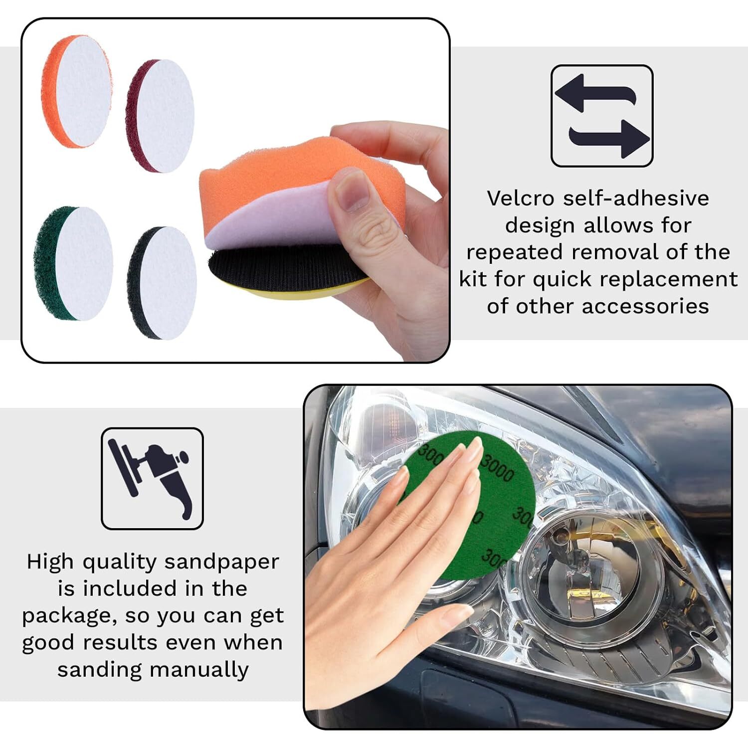 This headlight restoration kit is a game-changer! The 38-piece set includes everything you need to bring dull, foggy headlights back to life. The sanding and polishing pads work perfectly with a drill, making the job quick and easy. It’s compatible with all car types, and the results are like new. Plus, fast shipping and a 30-day return policy make it a risk-free purchase. Highly recommend for anyone looking to restore their headlights at home!