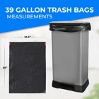 39 Gallon Trash Bags Heavy Duty Drawstring 100 Count Lawn and Leaf Bags 39 Large Heavy-Duty 39 Gallon Capacity: Our 39 gallon trash bags are robust and flexible, ideal for handling leaves, trimmings, sticks, and other lawn debris, as well as household garbage. These versatile lawn and leaf bags can handle it all, making them perfect for both indoor and outdoor use. Tough 20 Micron Thickness: Made from tough, leak proof material, these 39 gal trash bags are designed to carry heavy loads of garbage and outdoor waste. The 20-micron thickness guarantees that they won't rip or puncture easily, providing peace of mind during disposal. Large Size for Big Jobs: With dimensions of 33" x 39", these large black trash bags are perfectly sized to fit outdoor and large trash cans with a 39-gallon capacity. They offer ample space for all your waste, making them suitable for big clean-up jobs and extensive yard work. Convenient Red Drawstring Handles: Featuring strong, reliable drawstring handles, these lawn trash bags allow for easy lifting, tying, and carrying without tearing. The secure handles ensure a hassle-free disposal process, keeping your hands clean and the trash contained. Value Pack of 100 Bags: This pack includes 100 high-quality lawn and leaf bags, offering an excellent value for your money. Whether you're tackling a large project or stocking up for future use, you'll have plenty of bags on hand to get the job done efficiently. Product Description 1 Smart Choice 2 Reliable Build 3 Save Money 1 39 Gallons 100 Bags Pack 2 30 Gallons 150 Bags Pack Item model number TB39BLK100DRW-FBA Unit Count 1.0 Count Batteries Required? No Capacity 39 Gallons Number of Items 1 Color black Item Form Bag Material Polyethylene, Polypropylene Country of Origin Colombia Item Weight 8.97 pounds Batteries Included? No Material Feature Heavy Duty Recommended Uses For Product Yard Waste, Kitchen Waste Scent Unscented Package Dimensions 12.05 x 7.56 x 5.94 inches Size 1 Count (Pack of 1) Complimentary Shipping and Easy Returns Need to return something? Enjoy our 30-day hassle-free return policy! Take advantage of free shipping across all 48 contiguous states! Your order will be dispatched within 1-2 business days once payment is confirmed. Your Opinion Matters! Your happiness is our main goal! We welcome your feedback! If you encounter any problems, reach out to us right away, and we’ll be here to help. Explore the Extraordinary! Our collection showcases fascinating products that are sure to capture your attention. What surprises await you? Delve in and discover unique items that enrich your daily life. Don't miss the amazing things we have in store for you!
