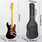 Made of durable scratch resistant fabric, with sturdy double zipper, anti-slip rubber pad on the bottom to prevent abrasion to the fabric. Soft padding gig bag for electric guitars, great to keep the dust, water and dirt off your guitar. Fits for peolple who store the guitar at home, studio, club, school, musical instrument shop. Fits for 39 inch Electric Guitars. Lightweight electric guitar backpack has a neck holding strap to keep the guitar in place. Thick padding shell is good protection to keep the musical instrument from light-travel nicks, scuffs and scratches. Side grip handle, rubber front handle and dual adjustable padded shoulder straps with back hanger loop, provide multiple convenient ways to get the guitar from place to place. As electric guitar carrying case or guitar backpack to transport your guitar back and forth to gigs, travel, home, church, lessons, gigs, concert, music school, rehearsals. Top small pouch perfect for guitar picks, cables, strings and other small stuff storage. Large front zippered pocket can hold music book, sheet music, guitar straps, tuners, capos and other musical accessories. Portable electric guitar bag is a nice gift for guitar beginner, students, guitartist. Such as birthday gifts, back to school gifts, party gifts, surprise gifts. TIPS: THIS GIG BAG IS TOO SHORT FOR AN ELECTRIC BASS GUITAR.