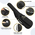 Practical Features: Compatible with 39 inch electric guitars. Thick padding soft shell electric guitar case protect guitar from scratch. Guitar neck strap keeps the guitar in place. Large Capacity: Small Exterior Pouch good for guitar picks, strings, capo, tuner, cables storage, etc. Large front pocket big enough to hold various music stuffs, like A4 and US letter size of music sheet/books, guitar strap, CD, tablet, smartphone, documents and more musical accessories. Easy Carrying: Dual Adjustable Breathable Shoulder Straps, Rubber Front Handle, Reinforced Side Handle and back hanger loop, provide multiple carrying ways to transport your beloved guitar, such as home, travel, school, club, gigs, rehearsals and classes. Back hanger loop can be hung on the wall when electric guitar bag not in use. Unique Design: Durable electric guitar bag is made of slight waterproof material, smooth soft lining fabric, reinforced double stitching and shockproof rubber bottom. Two-way metal zippers slide very smoothly. Perfect Gifts: Fashion electric guitar gig case is a good present for your family member, guitarist friends, guitar teacher, music students and other guitar players. As birthday gifts, back to school gifts, party gifts, anniversary gifts, Christmas gifts, thanksgiving days gifts and so on. (Tips: THIS ELECTRIC GUITAR BACKPACK CAN'T HOLD ELECTRIC BASS GUITAR.)