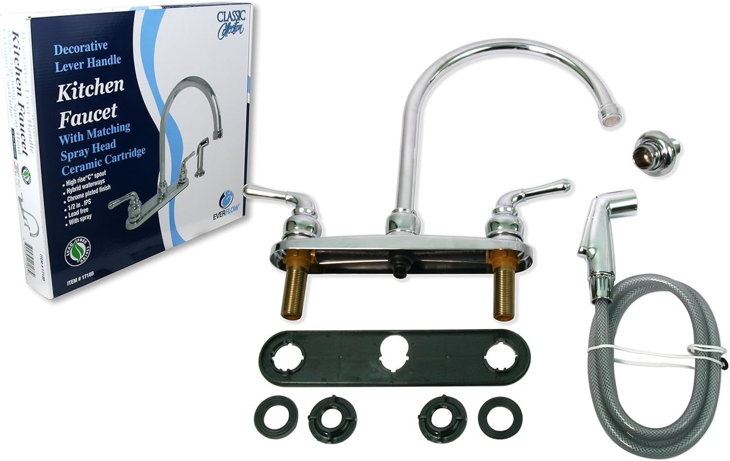 Store New Arrivals Add to Favorite View Feedback Contact 393II Kitchen Faucet, High Arc Swivel Spout, Chrome Plated Finish, Lead-Free Construction, Pull Out Side Spray Hose, 2 Operate Metal Handle 1.5 GPM Flow Rate Easy to Use Description Item model number 393II Style With Spray Spout Height 13 Inches Hole Count 4 Spout Reach 48 Inches Country of Origin China Hose Length 48 Inches Maximum Flow Rate 1.5 Gallons Per Minute Batteries Included? No Handle Location Left, Right Batteries Required? No Finish Chrome Product Dimensions 10 x 6 x 14 inches Material Brass Installation Type single_hole_deck_mount, Single Hole Model Name 393II Finish Type Chrome Included Components Two Handle Kitchen Faucet Item Package Quantity 1 Spout Design 1 Number of Handles 2 Item Weight 3 pounds Is Electric No Special Features Water Saving, Lead Free Special Feature Water Saving, Lead Free Part Number 393II Mounting Type Deck Mount Color Chrome Is Discontinued By Manufacturer No Handle Type Lever Global Trade Identification Number 00804595171882 Handle Material Brass Recommended Uses For Product Kitchen Simple, Elegant Lines Complement Traditional Decor; Scratch and Stain-Resistant Certified Lead-Free Compliant and ADA Compliant for Accessibility for those with Disabilities;Note: Hot and Cold Faucet Supply Lines Not Included and Should Be Purchase Separately Constructed with Durable High Quality Chrome Finish that is Easy to Clean & Easy to Install International products have separate terms, are sold from abroad and may differ from local products, including fit, age ratings, and language of product, labeling or instructions This Everflow Two Handle Kitchen Faucet offer symmetric styling and steadfast performance that will fit with any sink. It has a 2-Handle Design for precise adjustment of hot and cold water with Chrome Plated Finish. Includes a matching ergonomic side spray with front trigger design for easy activation. This spray head can be pulled out from the base with 48-inch long hose offers the flexibility of cleaning at the sink in any directions. The high arc gooseneck swivel design spout allows you the flexibility to clean and fill cookware with ease. Excellent for a new kitchen or can be used as a . Easy to clean chrome finish built to last and worry-free. Comes with easy to follow installation instruction suitable for DIY beginner and professional. Aerator flow rate is 2.2 GPM (Gallons Per Minute) at 60 PSI (Pound per Square Inch). Requires 3 or 4 holes mounting sink configurations. Complies with Americans with Disabilities Act (ADA) specifications. The Product Content Includes: A Deluxe Chrome Finish Kitchen Faucet with Two Lever Handle The 2-handle lever design makes it easy to operate, while the High-arc spout leaves plenty of room for washing hands. Made for efficiency, this faucet is also WaterSense certified to conserve water in a sustainable, functional style. High-Arc Swivel Spout A sleek high-arc spout that is a welcome upgrade to any kitchen. Convenient side spray makes clean up a breeze. Quality solid brass construction with a water saving aerator, backed by Limited . Directional Side Spray It has a thumb-applied trigger action spray that provides high-pressure directional power spraying. This spray head has a universal design and fits various faucets. ABOUT US We offer the best prices around on high quality products. Our E-store includes media such as books, movies, music and games while offering electronics, toys, sporting apparel, clothing, tools, general home, garden items and more. SHIPPING We are always working hard to ensure your package arrives as soon as possible. Please understand that some factors like weather, high postal traffic, and the performance of shipping companies are outside of our control. We offer free shipping to the lower 48 states and ship within 2 business days of payment, usually sooner. We do not accept P.O. Boxes. Please provide a physical address. For shipping outside of the continental USA, we only use eBay's Global Shipping Program.The item is shipped to KY and then sent to the rest of the world. International customers are responsible for all duties and taxes. Continue to check out in order to calculate costs for shipping the item to your country. Messages regarding eBay's Global Shipping Program MUST be directed at eBay EXCLUSIVELY. RETURNS We offer a 30-Day Return Policy on items which you are not completely satisfied with. You have the option for a full-refund or an exchange of the item. No returns are available on items shipped outside of the USA. PAYMENT We accept PayPal. CONTACT US This page content is yet to come Please ad us to your favorite seller and visit again later Thank You CUSTOMER SATISFACTION We try our very best to make sure every customer is completely satisfied. If there's a problem, message us! We're happy to help. WE ACCEPT Copyright © 2021 AutoDS. | All Rights Reserved