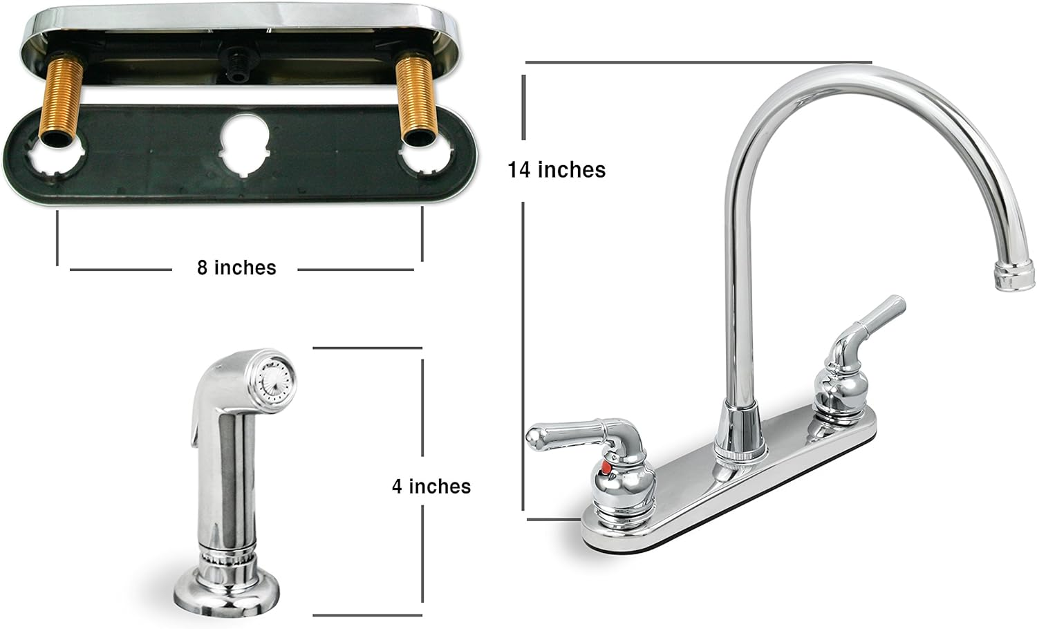 Menu Other Items Feedbacks About Us Contact Us Add To Favorites 393II Kitchen Faucet, High Arc Swivel Spout, Chrome Plated Finish, Lead-Free Construction, Pull Out Side Spray Hose, 2 Operate Metal Handle 1.5 GPM Flow Rate Easy to Use Simple, Elegant Lines Complement Traditional Decor; Scratch and Stain-Resistant Certified Lead-Free Compliant and ADA Compliant for Accessibility for those with Disabilities;Note: Hot and Cold Faucet Supply Lines Not Included and Should Be Purchase Separately Constructed with Durable High Quality Chrome Finish that is Easy to Clean & Easy to Install International products have separate terms, are sold from abroad and may differ from local products, including fit, age ratings, and language of product, labeling or instructions This Everflow Two Handle Kitchen Faucet offer symmetric styling and steadfast performance that will fit with any sink. It has a 2-Handle Design for precise adjustment of hot and cold water with Chrome Plated Finish. Includes a matching ergonomic side spray with front trigger design for easy activation. This spray head can be pulled out from the base with 48-inch long hose offers the flexibility of cleaning at the sink in any directions. The high arc gooseneck swivel design spout allows you the flexibility to clean and fill cookware with ease. Excellent for a new kitchen or can be used as a . Easy to clean chrome finish built to last and worry-free. Comes with easy to follow installation instruction suitable for DIY beginner and professional. Aerator flow rate is 2.2 GPM (Gallons Per Minute) at 60 PSI (Pound per Square Inch). Requires 3 or 4 holes mounting sink configurations. Complies with Americans with Disabilities Act (ADA) specifications. The Product Content Includes: A Deluxe Chrome Finish Kitchen Faucet with Two Lever Handle The 2-handle lever design makes it easy to operate, while the High-arc spout leaves plenty of room for washing hands. Made for efficiency, this faucet is also WaterSense certified to conserve water in a sustainable, functional style. High-Arc Swivel Spout A sleek high-arc spout that is a welcome upgrade to any kitchen. Convenient side spray makes clean up a breeze. Quality solid brass construction with a water saving aerator, backed by Limited . Directional Side Spray It has a thumb-applied trigger action spray that provides high-pressure directional power spraying. This spray head has a universal design and fits various faucets. Item Specification Item model number 393II Style With Spray Spout Height 13 Inches Hole Count 4 Spout Reach 48 Inches Hose Length 48 Inches Maximum Flow Rate 1.5 Gallons Per Minute Batteries Included? No Handle Location Left, Right Batteries Required? No Finish Chrome Product Dimensions 10 x 6 x 14 inches Material Brass Installation Type single_hole_deck_mount, Single Hole Model Name 393II Finish Type Chrome Included Components Two Handle Kitchen Faucet Item Package Quantity 1 Spout Design 1 Number of Handles 2 Item Weight 3 pounds Is Electric No Special Features Water Saving, Lead Free Special Feature Water Saving, Lead Free Part Number 393II Mounting Type Deck Mount Color Chrome Is Discontinued By Manufacturer No Handle Type Lever Global Trade Identification Number 00804595171882 Handle Material Brass Recommended Uses For Product Kitchen Dimensions Shipping Returns Additional Info Product Dimensions: 6.0 inches x 10.0 inches x 14.0 inches. Weight: 3.0 lb Fast shipping is very important for us. Our standard shipping service is FREE. Your order will be shipped within 1-3 business days upon full payment received. Most items are delivered within 3-5 business days, however, please allow 3-10 business days. We are shipping only to USA. We only ship to the confirmed Paypal address. We reserve the right to cancel any order for any reason at any time. We are not responsible for undeliverable addresses. We offer a 30 day return policy from checkout winning date. Your satisfaction is guaranteed! If for any reason you are unhappy with your item, just return it within 30 days for a full refund, minus shipping cost. Please contact us prior to initiating a return so that we can issue you a refund authorization. Items defective upon receipt must be packaged in their retail packaging as if new and returned with a detailed description of the problem. Return shipping fees are not refundable. We reserve the right to decline any returns if the above guidelines are not followed. All of our items, unless otherwise stated, will only run on 120 volts. Please check to make sure your country complies with these specifications. If you have a problem or question regarding your transaction please contact us before leaving any type of feedback. We will work with you to resolve any problem you may have.
