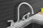 393II Kitchen Faucet, High Arc Swivel Spout, Chrome Plated Finish, Lead-Free Construction, Pull Out Side Spray Hose, 2 Operate Metal Handle 1.5 GPM Flow Rate Easy to Use Product Details Style: With Spray Brand: HIGHCRAFT MPN: 393II UPC: 804595171882 EAN: 7241870603684 Brand: HIGHCRAFT Recommended Uses For Product: Kitchen Mounting Type: Deck Mount Finish Type: Chrome Material: Brass Color: Chrome Number of Handles: 2 Included Components: Two Handle Kitchen Faucet Hole Count: 4 Special Feature: Water Saving, Lead Free Brand: HIGHCRAFT Recommended Uses For Product: Kitchen Mounting Type: Deck Mount Finish Type: Chrome Material: Brass Color: Chrome Number of Handles: 2 Included Components: Two Handle Kitchen Faucet Hole Count: 4 Special Feature: Water Saving, Lead Free Handle Type: Lever Style: With Spray Installation Type: single_hole_deck_mount, Single Hole Maximum Flow Rate: 1.5 Gallons Per Minute Model Name: Highcraft 393II Handle Material: Brass Spout Height: 13 Inches Spout Reach: 48 Inches Item Weight: 3 Pounds Handle Location: Left, Right Spout Design: 1 Hose Length: 48 Inches Is Electric: No Manufacturer: Highcraft UPC: 804595171882 Global Trade Identification Number: 82 Part Number: 393II Item Weight: 3 pounds Product Dimensions: 10 x 6 x 14 inches Country of Origin: China Item model number: 393II Is Discontinued By Manufacturer: No Finish: Chrome Item Package Quantity: 1 Special Features: Water Saving, Lead Free Batteries Included?: No Batteries Required?: No Date First Available: February 9, 2016 Simple, Elegant Lines Complement Traditional Decor; Scratch and Stain-Resistant Certified Lead-Free Compliant and ADA Compliant for Accessibility for those with Disabilities;Note: Hot and Cold Faucet Supply Lines Not Included and Should Be Purchase Separately Constructed with Durable High Quality Chrome Finish that is Easy to Clean & Easy to Install International products have separate terms, are sold from abroad and may differ from local products, including fit, age ratings, and language of product, labeling or instructions This Everflow Two Handle Kitchen Faucet offer symmetric styling and steadfast performance that will fit with any sink. It has a 2-Handle Design for precise adjustment of hot and cold water with Chrome Plated Finish. Includes a matching ergonomic side spray with front trigger design for easy activation. This spray head can be pulled out from the base with 48-inch long hose offers the flexibility of cleaning at the sink in any directions. The high arc gooseneck swivel design spout allows you the flexibility to clean and fill cookware with ease. Excellent for a new kitchen or can be used as a replacement. Easy to clean chrome finish built to last and worry-free. Comes with easy to follow installation instruction suitable for DIY beginner and professional. Aerator flow rate is 2.2 GPM (Gallons Per Minute) at 60 PSI (Pound per Square Inch). Requires 3 or 4 holes mounting sink configurations. Complies with Americans with Disabilities Act (ADA) specifications.The Product Content Includes:A Deluxe Chrome Finish Kitchen Faucet with Two Lever Handle The 2-handle lever design makes it easy to operate, while the High-arc spout leaves plenty of room for washing hands. Made for efficiency, this faucet is also WaterSense certified to conserve water in a sustainable, functional style. High-Arc Swivel Spout A sleek high-arc spout that is a welcome upgrade to any kitchen. Convenient side spray makes clean up a breeze. Quality solid brass construction with a water saving aerator, backed by Limited Lifetime Warranty. Directional Side Spray It has a thumb-applied trigger action spray that provides high-pressure directional power spraying. This spray head has a universal design and fits various faucets.