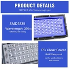 eBay Product Description: New Arrival Features: Wavelength 395nm, security UVA level, No harm to human skin and eyes. 120-degree luminescence angle, achieve a large area of blacklight irradiation. Environmentally friendly and energy-saving, Easy installation, Low consumption, high brightness. Specifications: Working Voltage: 110/220V Wavelength: 395nm, UV-A level LED Color: Ultra Violet Wattage: 20W LED Chip Model: SMD2835 LED Qty: 50PCS Size: 21*1.8*9.3cm = 8.26 * 0.7 * 3.66in Package include: 1 x UV Curing Light Tips: Please allow minor deviation due to manual measurement. Due to the difference between different monitors, the picture may not reflect the actual color of the item. Shipping: Shipping Estimated Delivery Time *Economy(without tracking): 11-35 business days *SpeedPAK(with tracking): 8-12 business days *EMS/DHL(with tracking): 7-10 business days, need to pay extra shipping cost For faraway region or countries (Brazil, Mexico, Peru, etc), the transit time may be longer than Overall Transit Time Frame. Notes, the delivery time may vary due to public holidays, natural disasters, customs issue and other unexpected impact, etc. Customs Declaration: Import duties, taxes and charges are not included in the item price or shipping charges. These charges are the buyer's responsibility. Please check with your country’s customs office to determine what these additional costs will be prior to biddingying. Payment: We accept PayPal ONLY currently. Payment must be made within 4 business days. If you do not have Paypal account, please register at (www.paypal.com). Return & Refund: Returns are accepted within 30 days. Please read the item description and check the pictures carefully before bidding. Return or refund is available only if item DOA or there's error in item description causing the item not fitting your need. In such cases, seller pays for all related shipping cost if any. Returns are also acceptable if buyer purchased this by mistake and item still in good condition for reselling. Buyer is responsible for all related shipping cost. Feedback: As long as you are satisfied with your purchase, please kindly leave us a 5 stars Positive Feedback , as it is very important for our store performance. If there is any problem with your order, please contact us and give us a chance to resolve your problem Before leaving us a negative feedback.