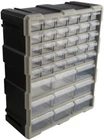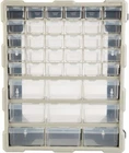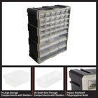 39-Drawer Plastic Organizer, Wall-Mountable, for Hardware, Crafts, or Classroom Polypropylene 39-DRAWER GARAGE ORGANIZER - Keep any area neat and tidy with the Stalwart plastic storage drawers organizer. Use these bins as a hardware organizer for nuts and bolts, for bead storage, as a craft storage cabinet, or even for classroom organization. QUALITY CONSTRUCTION - This small parts storage organizer is made to last, constructed from durable polypropylene that is difficult to damage or break. The clear storage drawers allow you to see their contents, and feature finger pulls for easy opening. TABLETOP OR WALL MOUNTABLE - The craft storage cabinet is portable and can be placed on any desk, table, or work surface, or use the keyholes on the back of the sturdy frame for convenient wall mounting in a closet, classroom, workshop, or shed. VERSATILE USE - With 9 large bins and 30 small drawers, all with removable dividers, the craft storage organizer is ideal for organizing a variety of items from fishing tackle, office supplies, or hardware, to art supplies, beads, or jewelry. PRODUCT DETAILS - Material: Polypropylene. Dimensions: (L) 15" x (W) 6.2" x (H) 18.5"; Small Drawers: (L) 2" x (W) 6" x (H) 1.4"; Large Drawers: (L) 4.2" x (W) 6" x (H) 2.25". 39 Total Drawers; 9 Large and 30 Small. Includes 9 Bin Dividers. Color: Black. Product Description The 39-Drawer Storage Cabinet by Stalwart is an excellent organization solution for your garage, home, or office. Constructed from strong and durable polypropylene, these garage storage bins are made to last. This screw organizer can be used table-top on a desk or workbench, or wall-mounted thanks to the built-in keyholes on the back of the frame. With 9 large and 30 small storage drawers with dividers, this craft organizer can easily store a variety of small parts, including hardware, office supplies, fishing tackle, beads, jewelry making supplies, and more — you can even use it as toy storage for building blocks. Stalwart, for craft organizers and storage solutions that are SMART, STRONG, and SECURE.