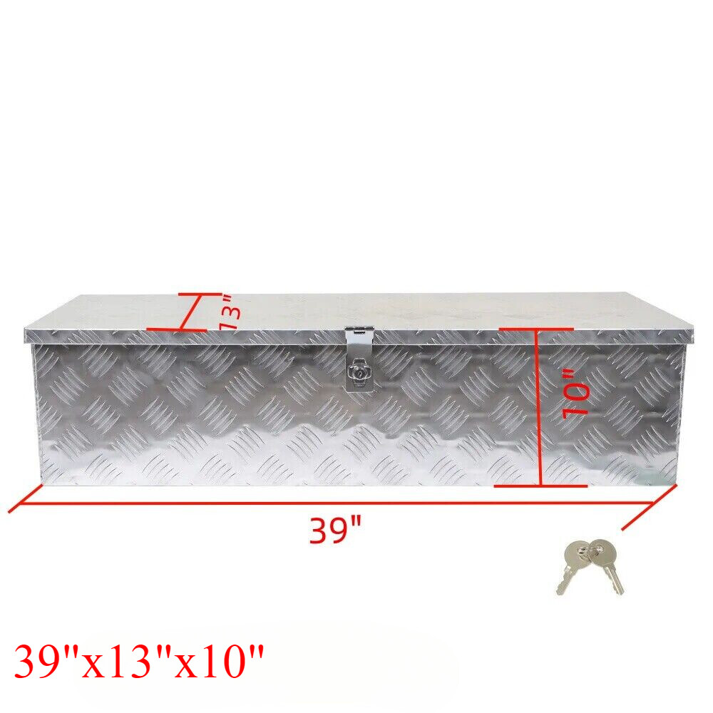 This aluminum toolbox is a game-changer for truck and trailer owners! The sturdy 5-bar tread design keeps everything secure, and the lock adds peace of mind. Lightweight yet durable, it fits perfectly under the vehicle to maximize bed space. The spacious interior easily holds tools and gear, while the sleek silver finish looks great. Installation is straightforward, and the included keys are a nice touch. Perfect for keeping your essentials organized and protected on the go!