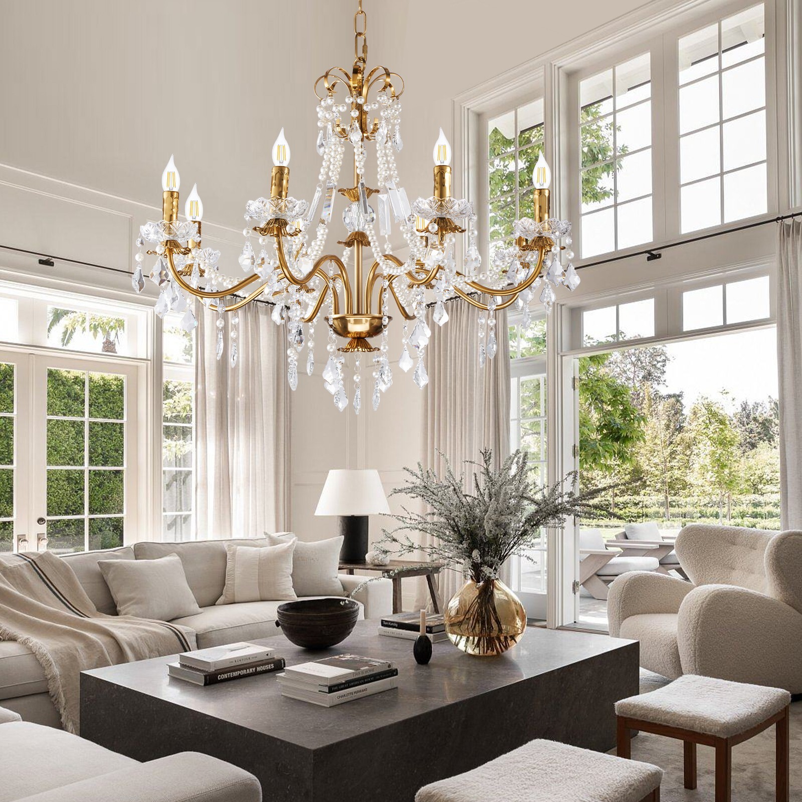 39"Large Luxury Crystal Chandelier 8-Light Pendant Fixture Ceiling Lamp Lighting About this item 【Amazing Design】: Our K9 Crystal Modern Rain Drop Chandelier Lighting is a true work of art that surpasses even the most stunning pictures. Crafted with superior-quality materials, including first-class crystal class raindrops and brightly finished stainless steel, it exudes modernity and elegance. 【10 Bulbs】: Illuminate your space with 8 E12 bulbs (bulbs not included) that are compatible with LED Edison, incandescent, CFL, and halogen bulbs. The K9 crystal chandeliers body shines brilliantly, adding an air of opulence and sophistication to your surroundings. 【Applicable Scenarios】: With its classic European crystal light and candle shape, this chandelier is a delightful decorative piece that complements various living spaces such as home living rooms, halls, corridors, balconies, and entrances. 【Product Size】: The chandelier measures 39.4 inches in diameter and 47 inches in height. The included chain/cord is adjustable, with a length of 29.5 inches, allowing you to customize its position to suit your space perfectly. 【Warranty】: We stand behind the quality of our product, offering a 60-day manufacturer defect warranty and a 30-day satisfaction guarantee. Your satisfaction is our commitment! Specification: Assembly Size: 39.4 inch X 47 inch (adjustable chain 29.5 inch) Materials: Metal & Crystal & Glass Bulbs: 8*40W E12 (Bulbs Not Included) Voltage: 110V Power Source: Hardwire Mounting Accessory Included: Yes Lamp Weight: 17.6 lbs. Elevate your home's decor and ambiance with our 8-Bulb K9 Crystal Chandelier, adding a touch of luxury and sophistication to any room. Whether you're looking for a gold chandelier, a gold crystal chandelier, or crystal chandeliers for bedrooms and dining rooms, this product fulfills your desires for style and opulence. Enhance your living spaces with the captivating allure of our Crystal Chandelier. Make your home more inviting and stylish today! Assembly: This light will need basic assembly skill, professional would be highly recommend. Warranty: If you received damaged or unqualified product, please kindly contact our customer service, we will handle your problems immediately! We're dedicating your 100% satisfaction! Payment Delivery details Return Contact us About us Payment 1.We accept PayPal,G Pay Credit Card,Visa ,etc. payment. 2. Please make payment within 4 days after placing an order, or eBay will automatically open an unpaid case on the fourth day. 3. You can contact us for sure if you want to cancel the order to avoid the unpaid case. Delivery details Your goods will be shipped within our handling time after your full payment. Pls note that we don't ship to Alaska, Hawaii and Puerto Rico.APO/FPO’s address. Return We accept return within 30 days, but we are not responsible for human damage.The return shipping cost is the buyer's responsibilities and try to keep it in your original package. Contact us If you have any questions please contact us through "Ask seller a question" link. We will respond within 2 business day or less. About us We are committed to providing you with a comfortable home and by functional and beautiful ceiling fans and lighting fixtures. As a professional modern lighiting fixture supplier, our team has more than 15 years Ceiling fan and lighting production experience. We are not only committed to produce high-tech, stylish, safe and high quality LED products, but also provide our professional and efficient after-sales service, making your lighting experience more pleasant and comfortable.