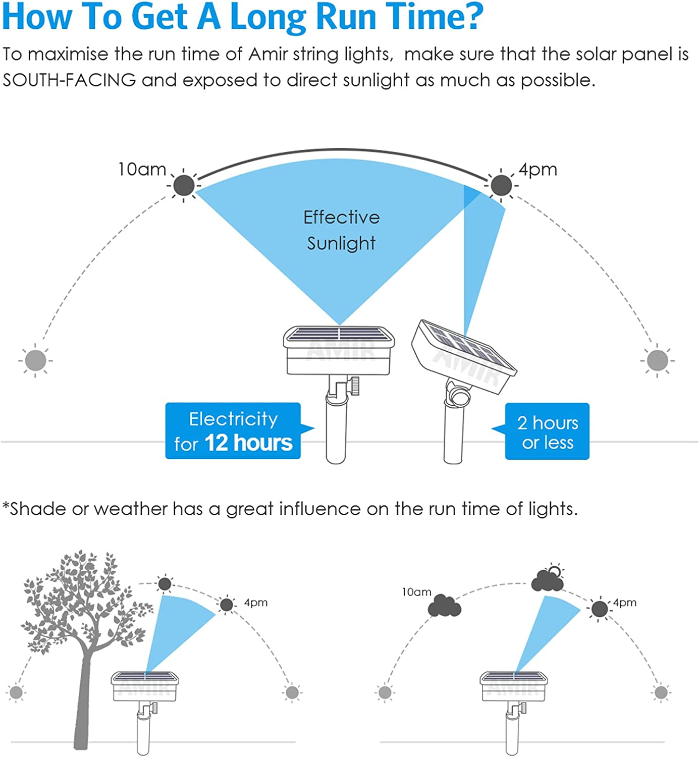 Store New Arrivals Add to Favorite View Feedback Contact Solar String Lights Outdoor, 8 Modes Mini 39 Feet 120 LED Copper Wire Lights, Solar Powered Fairy Light, Waterproof Decoration Light for Garden Yard Party Wedding Christmas, Warm White Description Item model number SL0 Light Source Type LED Style Modern Number of Items 1 Power Source Solar Powered Number of Light Sources 120 Control Method App Theme Wedding Batteries Included? Yes Assembled Height 12 centimeters Controller Type Button Control Batteries Required? Yes Product Dimensions 4.72 x 2.76 x 4.72 inches Material Copper Assembled Width 7 centimeters Seasons Christmas Number of Batteries 1 AA batteries required. (included) Is Discontinued By Manufacturer No Included Components Solar Panel Item dimensions L x W x H 4.72 x 2.76 x 4.72 inches Indoor/Outdoor Usage Outdoor Light Color Warm White Water Resistance Level Waterproof Item Weight 5 ounces Occasion Wedding, Christmas Special Features waterproof Special Feature waterproof Part Number SLO Color Warm White Form Factor string Batteries 1 AA batteries required. (included) Voltage 1.2 Volts Assembled Length 12 centimeters Size 120 LED ☀️Upgraded 120 Brilliant LED lights - 120 Super Bright LED bulbs on 39ft high quality copper wire, with steady 360 degree viewing angle they illuminate in every direction. Ideal for decorating your gardens, patio, gate, yard, wedding, party etc. ☀️High Quality & Flexible Copper Wire - Made with thin and flexible copper wire, coiled with bobbin winder to avoid a mess, the solar powered string lights (low voltage, no transformer included) is easy to storage and ready for the next use. Also, it is environmental- friendly, high energy conversion rate, durable and safe to use. ☀️2 Switch Buttons - POWER ON/OFF & Mode Switch. When you turn on the light, it will light up automatically when the environment is dark and auto off at sunrise. There are 8 modes for you to choose. (Modes: combination, fireflies flashing, waves, fading, chasing/flashing, fading slowly, twinkle/ flashing and steady on.) ☀️Long Lasting & Water Resistant - The solar fairy lights can work continuously for more than 12 hours at night if the panel absorbs enough sunshine during day. Both the string lights and the solar panel are IP65 Waterproof. No worry to use them in the rain. ☀️Easy to Shape - Flexible copper wiring can easily build the shapes you want: wrap around tree trunks or gazebos. In the dark, the wire fades to invisible, leaving only the bright lights. Product Description AMIR Upgraded Solar Lights Add to Cart Add to Cart Add to Cart Add to Cart Customer Reviews 4.2 out of 5 stars 12,406 4.2 out of 5 stars 12,406 4.2 out of 5 stars 15 4.2 out of 5 stars 12,406 4.2 out of 5 stars 2,063 Price $10.99 $ 10 . 99 $14.39 $ 14 . 39 — $12.59 $ 12 . 59 $15.29 $ 15 . 29 Light color Warm White Warm White Warm White White Warm White Power source Solar Powered Solar Powered Solar Powered Solar Powered Solar Powered Length 33FT 78.6FT - 78.6FT 39FT * 2 LED quantity 100 LED 240 LED 6 bulbs * 2 240 LED 120 LED * 2 Package quantity 1 Pack 1 Pack 2 Pack 1 Pack 2 Pack Description: Build any shape you like! Made with flexible and durable copper wire, you can build any shape you like, let your imagination and creativity run wild. With 39 feet of miniature warm white LEDs, you can beautify your patio, deck, front porch, family room, living room, kitchen, anywhere you like. Adding a funny, romantic atmosphere to your home, parties, wedding, etc. Features: ● Light color: Warm White ● Power source: Solar Powered ● Length: 39ft with 120 LED bulbs Note: 1. Please tear off the protective film from the solar panel before using. 2. These lights are not fully charged upon arrival. Please put them under the sun for direct sun exposure to get fully charged. Make sure get them charged for no less than 6 hours of direct sun light during the day. 3. When you want to charge the battery, please make sure it's on status. Then it will be charged automatically. 4. The battery is non- replaceable. Do not attempt to replace it. The lights bulb is constructed with non-replaceable. Do not attempt to replace any bulbs. Package Includes: 1 x 39ft 120 LED String Lights 1 x Solar panel & stand ABOUT US We offer the best prices around on high quality products. Our E-store includes media such as books, movies, music and games while offering electronics, toys, sporting apparel, clothing, tools, general home, garden items and more. SHIPPING We are always working hard to ensure your package arrives as soon as possible. Please understand that some factors like weather, high postal traffic, and the performance of shipping companies are outside of our control. We offer free shipping to the lower 48 states and ship within 2 business days of payment, usually sooner. We do not accept P.O. Boxes. Please provide a physical address. For shipping outside of the continental USA, we only use eBay's Global Shipping Program.The item is shipped to KY and then sent to the rest of the world. International customers are responsible for all duties and taxes. Continue to check out in order to calculate costs for shipping the item to your country. Messages regarding eBay's Global Shipping Program MUST be directed at eBay EXCLUSIVELY. RETURNS We offer a 30-Day Return Policy on items which you are not completely satisfied with. You have the option for a full-refund or an exchange of the item. No returns are available on items shipped outside of the USA. PAYMENT We accept PayPal. CONTACT US This page content is yet to come Please ad us to your favorite seller and visit again later Thank You CUSTOMER SATISFACTION We try our very best to make sure every customer is completely satisfied. If there's a problem, message us! We're happy to help. WE ACCEPT Copyright © 2021 AutoDS. | All Rights Reserved