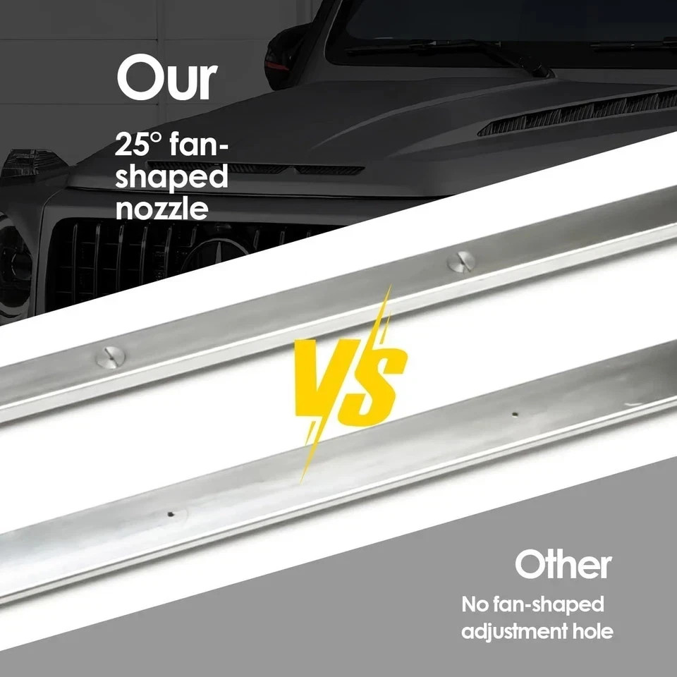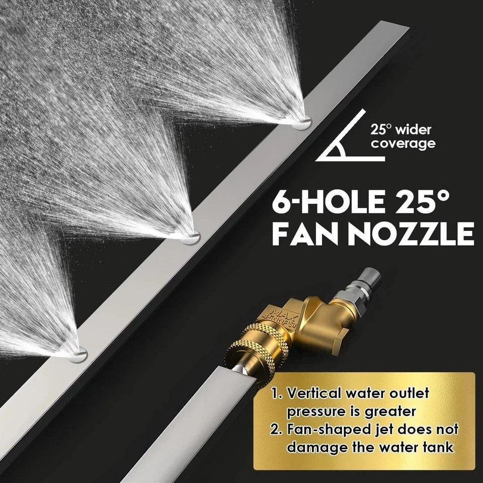 Higher Water Pressure: After testing, under the same water pressure, the 6-hole 25° fan-shaped nozzle radiator cleaning wand has a more powerful force of water and a wider coverage area, which can provides a powerful spray that effortlessly removes stains and residue from the tank, leaving it spotless Efficient Cleaning: Radiator cleaning wand has a flat and elongated design making it more suitable for cleaning narrow areas. and it fits securely with pressure washer gun, you was able to get underneath your car easier, and get all the nooks and crannies you usually miss, it has been incredibly effective for maintaining your vehicle’s water tank Multipurpose quick connector: The quick connector can rotate 180 degrees, solving the problem of pressure reduction caused by bending the water pipe, and can withstand a maximum of 4500PSI. Radiator cleaner wand with a 1/4" quick connect adapter, so you can also plug it directly into a high pressure water gun and air pressure interface Problem Solved: Radiator has not been cleaned for a long time or has been driven off-road many times in muddy conditions, this would result in overheating of the engines and poor cooling via the A/C. You need this radiator cleaning tool, inserted it between the radiator and A/C condenser coils to backwash all the dirt and debris. It worked great Rugged and Durable: Pressure washer radiator wand is made of stainless steel, which is durable, efficient, and delivers excellent results, making it a must-have for any thorough vehicle maintenance routine. Radiator cleaning tool includes 1*pure copper quick-disconnect connector, 1*39-inch long pressure washer wand