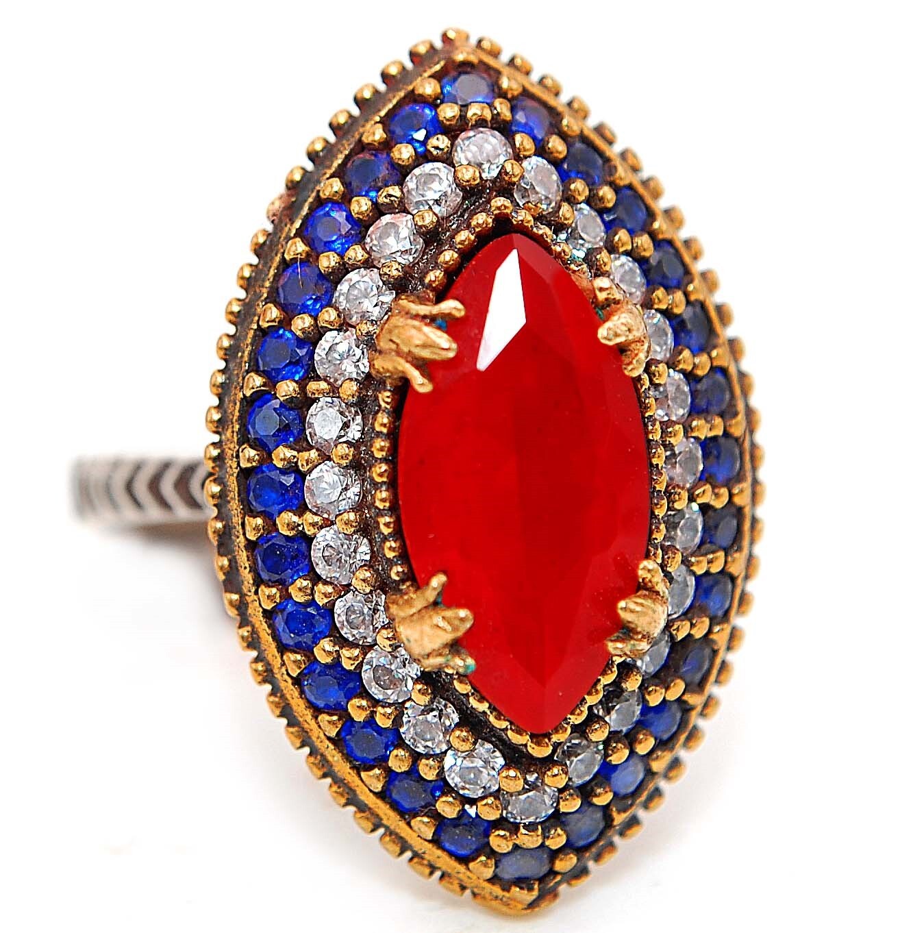 Menu Store FAQ Payment Shipping returns Feedback CONTACT US SHOP BY RING SIZE 4 4.5 5 5.5 6 6.5 7 7.5 8 8.5 9 9.5 10 10.5 11 11.5 All STORE CATEGORIES 99 cent daily deals Auctions Ending Soon New Arrivals Buy it now Rings Pendants Earrings Necklace Bangles & Bracelets POPULAR STONES Aquamarine Ruby Sapphire Pink Sapphire NATURAL GREEN SAPPHIRE Topaz Opal Pearl Amethyst Blue Topaz Kunzite Herkimer Diamond Hand Carved Fossils Citrine Garnet Alexandrite Natural Rough Two-Tone Sterling Silver Store Newsletter Add old-english-silver to your Favorites and receive our e-mail newsletters about new items and special promotions. General Interest Sign Up Gemstone : TREATED RUBY & BLUE SAPPHIRE, WHITE TOPAZ Metal : Genuine 925 Solid Sterling Silver Total Carat Wt : 3 Total Gram Wt : 8 Ring Sz : 8 Shipping & Handling