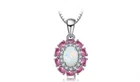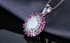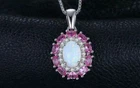 3Ct Oval Cut Lab Created Fire Opal & Red Ruby Halo Pendant 14K White Gold Over
