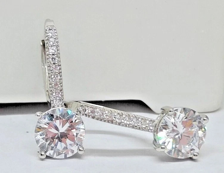 3.00 Ct Round Cut Moissanite Drop/Dangle Wedding Earrings 14k White Gold Plated Customization: Want to add your personal touch to this piece? Contact us and we will create one just for you. Most customization requests include: 1) Ring Resizing 2) Redesign 3) Metal Change (Silver/10K Gold / 14K Gold /18K Gold) 4) Metal Color Change (White/Yellow/Rose/Black) 5) Color Stones (White Topaz, Pink Sapphire, etc) 6) Engraving (Name or any message - no of characters subject to size of jewelry) 7) Anything under the sun that catches your fancy, we will give it a try :) Payment: We accept payment via PayPal only. You can also pay using your credit card, via paypal, by using paypal as a guest. Payment is required within 3 days of the sale of an item. Shipping: International shipments are usually delivered within 2 to 6 weeks, depending on the time taken to clear customs. We are not responsible for any delays due to customs. Please note that all countries charge a duty on imported goods. A customs clearing charge is also imposed in many countries. We are not responsible for the amount of duty or any other related charges. Terms & Sale: We want to ensure that you are completely satisfied with your purchase. If not, then please let us know before leaving any feedback and allow us to work with you to completely resolve any issues that you might be facing. You can return the item for a full refund LESS shipping, within 14 days of item(s) receipt date. There is no restocking fee. 100% Satisfaction Guaranteed. All returns must reach us within 14 days after the item was delivered to you the item must be in the original condition and with the original tags attached. Contact Us: You can contact us by clicking on 'ask seller a question'