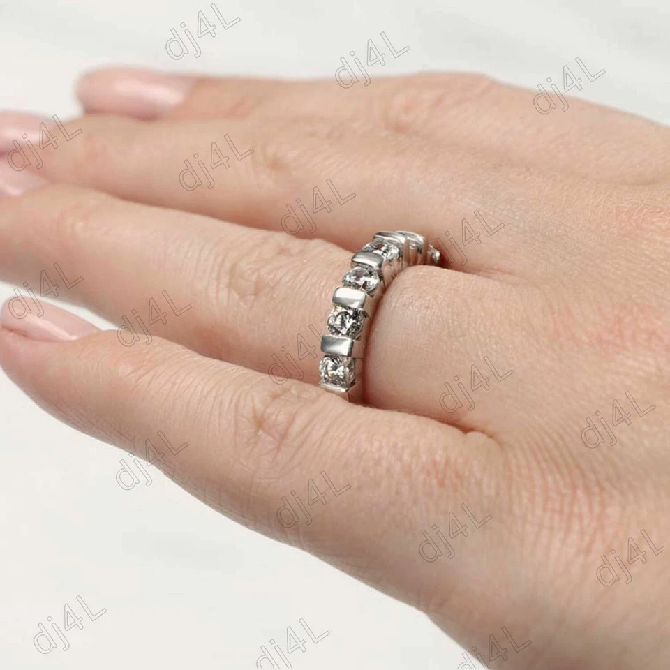 3Ct Round Bar Set Moissanite Eternity Wedding Band Ring 925 Sterling Silver sz-5 Customization: Want to add your personal touch to this piece? Contact us and we will create one just for you. Most customization requests include: 1) Ring Resizing 2) Redesign 3) Metal Change (Silver/10K Gold / 14K Gold /18K Gold) 4) Metal Color Change (White/Yellow/Rose/Black) 5) Color Stones (White Topaz, Pink Sapphire, etc) 6) Engraving (Name or any message - no of characters subject to size of jewelry) 7) Anything under the sun that catches your fancy, we will give it a try :) Payment: We accept payment via PayPal only. You can also pay using your credit card, via paypal, by using paypal as a guest. Payment is required within 3 days of the sale of an item. Shipping: International shipments are usually delivered within 2 to 6 weeks, depending on the time taken to clear customs. We are not responsible for any delays due to customs. Please note that all countries charge a duty on imported goods. A customs clearing charge is also imposed in many countries. We are not responsible for the amount of duty or any other related charges. Terms & Sale: We want to ensure that you are completely satisfied with your purchase. If not, then please let us know before leaving any feedback and allow us to work with you to completely resolve any issues that you might be facing. You can return the item for a full refund LESS shipping, within 14 days of item(s) receipt date. There is no restocking fee. 100% Satisfaction Guaranteed. All returns must reach us within 14 days after the item was delivered to you the item must be in the original condition and with the original tags attached. Contact Us: You can contact us by clicking on 'ask seller a question'