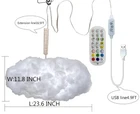 Experience a burst of colors synchronized with music! Multi-Color changing SYNC with Music: The Cloud Lightning Light is both vivid and resilient, offering a lightning cloud simulation. Adjust t he brightness and explore millions of color options. Activate the intelligent music mode with an adjustable microphone sensitivity – watch as the light dances to your chosen tunes, creating a stunning visual display. Play thunder sounds alongside for an even more captivating cloud lightning effect. Widely Use: These Cloud Lights are incredibly versatile. While they fit perfectly in a child's bedroom, they also elevate other spaces like bedrooms, kitchens, and displays. They're an excellent addition to your IG, YouTube, Facebook, and TikTok videos, providing an eye-catching background. Installation is a breeze: Attach the ceiling buckles where you want, and gently hang the cloud lamp after taking it out of the compression bag. Power it via USB, compatible with 5V adapters, USB sockets, and connectors. Package Included and Size: The Big Cotton Cloud Lightning Light package, complete with a perfect-sized cloud light (L: 60-70CM, W: 35-40CM), USB with APP control, a 360° Wireless 2.4G Music Remote Controller, and 2 convenient Ceiling Buckles. Specifications: Style: Modern and simple Type of pendant lamp: Fabric pendant lamp Intelligent type: Remote control operation Light source type: Led lamp Body material: Fabric Switch type: Remote control Adjustable height: 1000 (m) Overall dimension: 1000 (mm) Average service life: 5000 (hours) Package: Music Sync 3D Cloud Light Remote Control USB data cable + manual