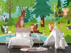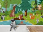3D Cartoon Forest River Animal Wall Murals Wallpaper Murals Wall Sticker 158