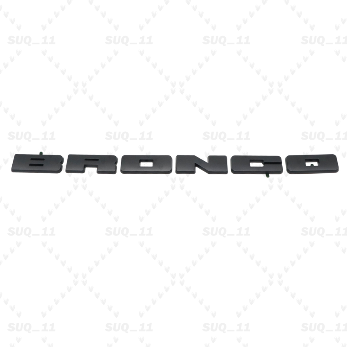 Product Introduction Elevate your Bronco Sport (2021-2025)’s front-end style with this premium grille emblem. It brings a bold, aggressive look to your vehicle—thanks to its sleek matte black finish and raised lettering—adding both sophistication and visual impact to the front grille. Product Features Durable Matte Black Finish : Delivers a modern aesthetic while resisting fading and corrosion, maintaining its look long-term. 3D Raised Lettering : Adds depth for a high-quality, dimensional appearance that enhances the grille’s overall appeal. Hassle-Free Direct Install : No modifications needed; it works as a direct replacement, with adhesive backing ensuring a secure fit. All-Weather Resilience : Crafted from high-quality materials to withstand various weather conditions, ensuring reliable use. Product Specifications Material : High-Quality Materials Color : Matte Black Fitment : Bronco Sport models (2021-2025) Installation Location : Vehicle Front Grille Installation Method : Direct replacement with adhesive backing (no modifications required)