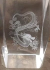 3-D Laser Etched Glass Crystal Paperweight Fire Breathing Dragon 3.2"x2" Medieval, Good Condition.