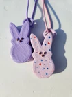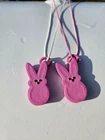 This listing is for 3 PEEP BUNNY pendant necklaces. They are 3d printed and painted in a variety of "Flavors". For each set/auction, you will receive 3 different PEEP bunny necklaces (a random set).
