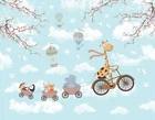 3D Sky Cloud Animal Giraffe Floral Wall Murals Wallpaper Murals Wall Sticker