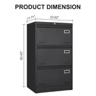 Specifications Place of Origin China Main Color Black Main Material Metal Cabinets Storage Quantity 3-4 Drawers Cabinets Features Drawers Included Use Case Office Cabinets Type Filing Cabinets Dangerous Goods #dangerFlag# Dimensions & Weights Assembled Length (in.) 23.00 Assembled Width (in.) 17.00 Assembled Height (in.) 40.00 Weight (lbs) 61.00 Product Features Widened drawers The drawers of a file cabinet are usually larger than standard sized drawers, so they can accommodate more documents and information.Different types of documents and materials can be placed in different drawers to maintain a clean and orderly office environment. The drawer file cabinet not only has the function of storing files, but also can classify and organize different types of files, so that employees can quickly find them when they need to search or use them, thereby improving work efficiency. Description Large capacity storage drawer The design of a large capacity storage drawer can provide more storage space and store more items, making it easy to organize and classify. More items can be stored in limited space, improving space utilization. Heavy three section slide rail The heavy-duty slide rail has strong load-bearing capacity, smooth sliding, no noise, and can easily push and pull drawers. It is made of high-quality materials, with a long service life and durability, and can be used for a long time without deformation or damage.