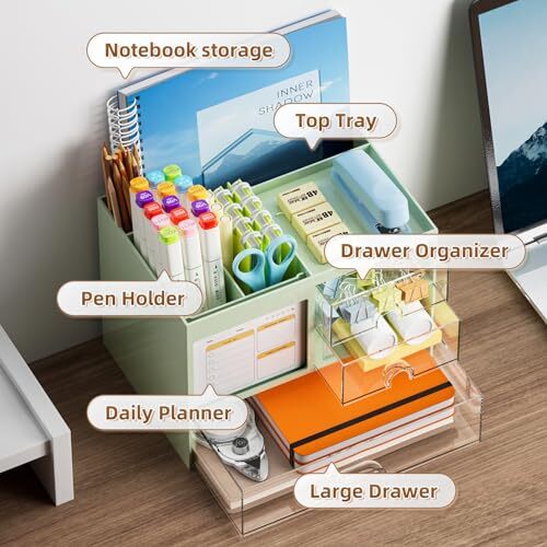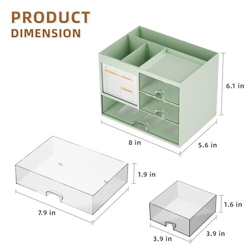 Politica di ritorno Consegna veloce Venditore di fiducia Desk Organizer with 3 Drawer, Multi-Functional Pencil Pen Holder for Desk, Desk Organizers and Accessories with 4 Compartments, Desktop Organizer Storage for Office Home Supplies (Green) Descrizione del prodotto ✏️【Larger Capacity】Set of 2 compartments pen holder, 1 top tray, 1 notebook holder, and 2 drawers + 1 larger drawer organizer which has enough storage to allow for office supplies organization. Large capacity, multifunction help you arrange the desk accessories and stationaries clean and tidy.The best and safest storage option for you. Perfect Size:8*5.6* 6.1inch. ✏️【Daily Memo for Free】This humanized desktop storage box is not only perfect for storing your desktop stationery but also great for doing your daily schedule. In particular, the daily planner is placed in the most visible place on the desktop, which can serve as a more prominent reminder and help you work effectively. ✏️【Multifuction Desk Organizer】This Desk Caddy is no installation required not only perfect for storing your desktop stationery and many other desk widgets but is also great for storing your makeup brushes, nail polishes, lipsticks, and other small personal items sorted by type. The transparent drawer makes it way easier to find what you need! and You can put any other daily necessities on the organizer, It helps you keep your stuff organized. ✏️【Premium Material】This storage drawer organizer is crafted from durable ABS plastic, ensuring its strength and solidity for long-term use. The smooth operation of its drawers allows for easy opening and closing. Additionally, its waterproof design makes it effortless to clean, maintaining its pristine appearance over time. ✏️【Best Choice】The all-in-one desk pen organizer be certain to bring our customers more convenience in the office and be popular in our daily life. We offer a 90-day return policy. You take NO RISK by ordering today! Spedizione Ritorna Pagamento Spedizione La spedizione è GRATUITA per tutti gli indirizzi in Italia. Tutto il nostro stock viene spedito da magazzini situati in Italia. Tutti gli ordini verranno spediti entro 24-72 ore dal ricevimento del pagamento. Consulta il nostro feedback per vedere le ottime recensioni sulla VELOCITÀ di spedizione che offriamo. Ritorna Il venditore non accetta resi. Pagamento Al momento accettiamo pagamenti solo tramite gestione pagamenti eBay. Una volta effettuato il pagamento, spediremo la tua spedizione entro 1-3 giorni lavorativi. Si prega di fare riferimento alla scheda "Spedizione" per ulteriori informazioni sulla velocità di spedizione verso la tua destinazione.
