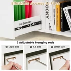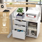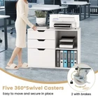 3-Drawer Office File Storage Cabinet 5-Position Adjustable Shelf 5 Rolling Wheel Key Features ● Enhanced Organization Capacity: The file cabinet offers ample storage with 3 spacious drawers, including one with adjustable hangers that accommodate letter, A4, or legal size files. A tailored storage solution to meet your home or office organization needs! ● Customizable Organization: The filing cabinet also features a 5-position adjustable shelf, allowing you to customize the internal layout to fit different sizes of office supplies. This feature further enhances adaptability to diverse organizational needs. ● Move with Ease, Lock with Confidence: Equipped with 5 smooth rolling wheels, including 2 with brakes, the printer cabinet provides effortless movement across different surfaces. These wheels also maintain stability when stationary, making it convenient for rearranging office spaces. ● Stylish Durability for the Modern Office: Enjoy the sleek design with convenient cut-out handles and a surface that wipes clean effortlessly. This office cabinet is not just a storage solution but a statement piece in your office setting. ● Versatile Storage for Every Setting: Designed for broad utility, this mobile cabinet is the go-to for professionals and home users alike. Its robust build and spacious tabletop function well as a printer stand in any environment. Overview -Adjustable file compatibility with legal size/A4 size/letter size files -Practical adjustable shelf has 5 positions to choose, and with 1.2" clearance -Designed for you to customize the storage space for your work supplies -5 universal casters ensure flexible movement across the home office -Additional center caster provide extra support -Lockable design will keep it stable and in place -Full-extension drawers for easy access to items inside -Cut-out handles and smooth metal slides for easy pulls of drawers -Easy-to-clean surface saves time and effort Color White Material Engineered Wood, MDF Overall Dimensions 32" x 16" x 26" Dimensions of Right Compartment 14" x 15" x 23" Interior of Small Drawer 14.5" x 13.5" x 4" Interior of File Cabinet 14.5" x 13.5" x 9.5" Cabinet off Ground 2" Weight Capacity of Tabletop 155 lbs Weight Capacity of Shelf 45 lbs Weight Capacity of Small Drawer 11 lbs Weight Capacity of File Drawer 22 lbs Net Weight 50 lbs