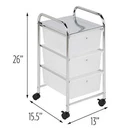 Return Policy Fast Delivery Trusted seller 3-Drawer Plastic Storage Cart on Wheels,Silver Product Description 0% fabric Imported Plastic drawer storage unit with steel chrome-plated design Small storage unit for home office organization ideas and more Holds 11 pounds on tits op plate and 4.4 pounds per drawer Cart includes four wheels with two locking casters Rolling storage bin will not scuff or damage floors Dimensions: 12.99” L x 15.35” W x 25.59” H Shipping Returns Payment Shipping Shipping is FREE to all addresses other than APO/PO boxes in the lower 48 states. All our stock ships from US-based warehouses. Shipped via USPS or UPS (depending on location and package weight) Unless stated otherwise, all orders will ship within 24-72 hours of your payment being processed. Check our feedback to see the great reviews of FAST shipping we offer. Returns Seller does not accept returns Payment We currently accept payment via eBay managed payments only. Once payment is cleared, we will dispatch your shipment within 1-3 business days. Please refer to the "Shipping" tab for more information regarding shipping speed to your destination.