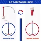 3 WAYS TO PLAY - ①Hanging Tee: Baseballs with self-stick covers and can be hung anywhere from 15" to 30" off the ground. The novel hanging tee brings more fun for kids! ②Fixed Standing Tee: The traditional tee can better help kids practice how to hit the ball. ③Automatic Launcher: Very easy to use, child only needs to hit an automatically ejected baseball. ADJUSTABLE HEIGHT - ①The hanging baseball tee adjusts from 24.4" to 39.4" in height. ②The fixed standing tee adjusts from 22.6" to 37.2" in height. Easy to twist and lock the height, you can adjust different heights for your child. Let the baseball toys grow with your child. EASY TO ASSEMBLE - Our baseball set includes a retractable bat, an automatic launcher, 6 balls, a storage bag and all necessary assembly accessories. We include clear assembly instructions that take only 5 minutes to follow. It’s very easy to switch between a hanging tee and a standing tee. SAFE & STURDY - HYES baseball set is made up of high-quality durable materials and strictly certified by ASTM and CPC, BPA-free. The base is an X-shape, making the teeball stand more sturdy and not easy to tip over. The smooth & round edge and non-slip handle design can protect your baby’s hands. Let your baby experience baseball safely! IDEAL SPORT GIFT FOR KIDS - Our baseball toys can be quickly disassembled and stored. It is a great sports game for both outdoors and indoors. This baseball gift can enhance your child's interest in sports and improve their hand-eye coordination. HYES baseball toy set is the perfect gift for birthdays, Christmas, Thanksgiving and New Year! Product Description 3 IN1 FEATURES ADJUSTABLE HANGING TEE The hanging tee design suspends a ball anywhere from 15" to 30" from the ground using self stick technology. Helps improve batting skills, motor skills and hand eye coordination. ADJUSTABLE STANDING TEE The traditional fixed standing tee can better help kids practice how to hit the ball. Features with lightweight & easy holdable baseball bat to help move it freely. AUTOMATIC LAUNCHER Once your baby start to grow and improve, just enjoy the fun of automatic pitching machine! A baseball can bounce from the automatic tee to add more fun. PRODUCT FEATURES BALL WITH SELF-STICK COVERS PRESS TO BOUNCE THE BALL STURDY X-BASE EASY TO STORE 6 BALLS & BAT