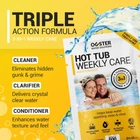 3-IN-1 WATER CARE: Our weekly maintenance treatment includes a combination of hot tub cleaner, conditioner, and clarifier. Specially formulated to deliver sparkling clean and crystal clear water and ensure a soft and silky water feel for your next soak! KEEPS YOUR HOT TUB FEELING FRESH: Helps prevent gunk and buildup from accumulating in your plumbing system, jet lines and filter. Use weekly to protect all your hot tub parts and extend the life of your spa. EASY TO USE: Simply add 2oz of 3-IN-1 Weekly Care for every 500 gallons of water and turn jets on high for 30 seconds. Repeat Ouster 3-in-1 Weekly Care every 7 days thereafter. For best results, use together with Ouster Hot Tub Restoration to deep clean hot tub plumbing, jets, and tubes. WORKS ON ALL SPA TYPES: Formulated for today's premium acrylic hot tubs, inflatable hot tubs and jetted portable spas. QUALITY YOU CAN TRUST: Ouster spa and hot tub chemicals are made of the highest quality ingredients and proudly manufactured in the USA. Give our 3-IN-1 a go and your spa will thank you! Product Description The video showcases the product in use. The video guides you through product setup. The video compares multiple products. The video shows the product being unpacked. Can I safely add this product to my hot tub without risking discoloration? This product is free from bleach and harsh ingredients that could cause fading or discoloration. Where is this product made? This product is produced and packaged within the United States. Is this suitable for use in both inflatable and saltwater hot tubs? Hot Tub Weekly Care is compatible with all types of hot tubs. It's designed to be safe for use with various sanitizers, including chlorine, bromine, mineral, saltwater, and biguanide systems. Should Hot Tub Weekly Care be used as a replacement for my usual sanitizers like chlorine or bromine? No, Hot Tub Weekly Care serves as a water clarifier and conditioner and should not replace your sanitizer. It aids in maintaining clear water but does not have sanitizing properties. You should continue using your regular sanitizer. What is the difference between Hot Tub Weekly Care and Hot Tub Power Purge? Hot Tub Power Purge flushes built-up gunk hiding in your hot tub’s plumbing system. This treatment should be used once every 3-4 months. Hot Tub Weekly Care helps keep your water clear in between Purge treatments. Just one dose needed every 7 days. Shop Ouster Products Add to Cart Add to Cart Add to Cart Add to Cart Add to Cart Add to Cart Customer Reviews 4.3 out of 5 stars 4,326 4.5 out of 5 stars 745 4.3 out of 5 stars 418 4.0 out of 5 stars 31 4.8 out of 5 stars 27 4.4 out of 5 stars 851 Price $24.97 $ 24 . 97 $24.97 $ 24 . 97 $59.97 $ 59 . 97 $17.95 $ 17 . 95 $19.97 $ 19 . 97 $21.99 $ 21 . 99 Size Options 8oz, 16oz, 32oz 2oz, 8oz Kit 32oz 16oz 8oz Use Weekly Care & Maintenance Deep Clean for Plumbing & Jets Complete Kit for Hot Tub Deep Clean for Filters Cleaner for Inside Surfaces Deep Clean for Plumbing & Jets Frequency Every 7 Days Every 3-4 Months Weekly & Quarterly Every 3-4 Months As Needed Every 30 Days Fast Acting & Maximum Strength ✔ ✔ ✔ ✔ ✔ ✔ Works on All Tub Types ✔ ✔ ✔ ✔ ✔ ✔ Professional Grade Formula ✔ ✔ ✔ ✔ ✔ ✔ Extends Spa Life ✔ ✔ ✔ ✔ ✔ ✔ Made in USA USA USA USA USA USA