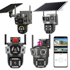A: 4MP Camera(2 Lens) Mains Features : 1. 2K 4MP (2MP+2MP) HD Dual Lens Network IP Camera For Indoor&Outdoor 2. Dual light source design, built-in 8 pcs infrared light + 8 pcs white light, night vision infrared and night vision full color can be set; 3. Pan&Tilt: horizontal 0~350 degrees, vertical 0~90 degrees; 4. 2.4G WIFI + RJ45 network port for Internet access; 5. power supply DC 12V/2A 6. Dual Design, Support SD / TF storage and cloud storage; 7. Two-way voice intercom, two-way video synchronous recording and playback 8. Humanoid detection/vehicle detection/pet detection/other detection 9. Automatic tracking/movement alarm, alarm output sound and light linkage; 10. AI intelligent algorithm to achieve video 3D positioning and continuous tracking of target alarms; 11. Support Android/IOS APP remote management (V380 Pro). Real Two Way Audio Notice: APP: V380 PRO does not support 10XZOON 350° Pan Rotates & 90° Tilt Rotate Rotates 350° Horizontally and 90° Vertically, 80° View Angle You can control it in the "V380 Pro" app directly whenever you want and wherever you are . AI Humanoid Detection When the security ip camera detect motion, Led show up to scare thief. This security analyzes visitor's body shape and identify human immediately. This smart home camera will capture the human's abnormal movements. Dual Screen Live video one camera can monitor two positions,which is equivalent two cameras,saving you more money. IP66 Waterproof / Dustproof The camera case is made of high-quality ABS plastic, which is waterproof, sun-proof and dust-proof. It is suitable for any environment. B: 9MP camera (3 lenses) Product specifications: Sensor: 3MP+3MP+3MP Lens: 3.6mm Infrared light: upper infrared 12 lights, white 10 lights, lower infrared 10 lights, white 4 lights Low illumination: 0.01Lux Effective distance: 8-10 meters Switch: automatic Termination (s): N/A Thunder sensor: None 2. Video imaging Lens pixel: 3 million+3 million+3 million Compression format: H.264 High profile Effective resolution: 1920x1080P Visual angle: 105 degree Frame rate: 1080P 18FPS Mirror flip function: Yes Visual mode switching: ultra clear&high-definition&automatic 3. Audio Voice communication: two-way intercom Audio input: built-in microphone Audio output: built-in speaker 4. Network mode Network interface: wireless (WiFi) or 4G, without network port Network protocols: IP, TCP, DHCP WPS Domain name resolution: Yes Port transmission: P2P Platform: Dual Stream DHCP: Automatic 5. Wireless Output power: 802.11g: 10.95dBm (0.012w) 802.11b: 10.74dBm (0.012w) 802.11nHT40: 11.58dBm (0.014w) 802.11nHT20: 11.07dBm (0.013w) Frequency: 2412-2462MHZ 6. Antenna Antenna: omnidirectional antenna Antenna gain: 3dBi Network security: WEP, WPA-PSK, WPA2-PSK FCC identification number: 2APD7-R9820 Bandwidth: 40000 khz Modulation: DSSS, OFDM 7. Pan tilt Pan tilt angle: horizontal left and right: 355 degrees, vertical up and down: 110 degrees“ 8. Control Management Remote control: App remote Multi user management: Share up to 5 users Split screen view: up to 4 split screens display Mobile applications: IOS&Android 9. Alarm and notification methods Mobile detection: yes Information push method: Mobile phone automatic push (1 image, 3 second video) Information push interval: 5 seconds APP name: IPC360 home Storage method: Amazon Cloud (overseas) Alibaba Cloud (mainland)/TF 350° Pan Rotates & 90° Tilt Rotate Rotates 350° Horizontally and 90° Vertically, 80° View Angle You can control it in the "V380 Pro" app directly whenever you want and wherever you are . AI Humanoid Detection When the security ip camera detect motion, Led show up to scare thief. This security analyzes visitor's body shape and identify human immediately. This smart home camera will capture the human's abnormal movements. Dual Screen Live video one camera can monitor two positions,which is equivalent two cameras,saving you more money. IP66 Waterproof / Dustproof The camera case is made of high-quality ABS plastic, which is waterproof, sun-proof and dust-proof. It is suitable for any environment. D:9MP Camera(3 Lens) Description Features: dual lens, dual screen viewing Option: WIFI=WIFI 2.4Hz connection 1:3MP+3MP+3MP million pixel outdoor solar monitoring camera 2. High definition: Shoot with a high-definition camera to ensure the effectiveness and quality of video shooting, allowing you to have real-time control of the outdoor environment. 3. Night vision system: optional infrared or color night vision, which can monitor the doorstep in real-time at any time to ensure safe and smooth enjoyment. 4. APP V380 Pro remote operation: functions such as remote operation, photography, and video recording, allowing remote control of the outdoor environment. 5. Voice intercom: With voice intercom function, you can transmit sound to the external environment through your phone or replay the sound to visitors through the device. 6. Custom alerts: supports custom alerts, and when you receive an alert, it will immediately send an alert message to your phone 7. Multi user remote access: Share the same camera with your family, leave everything you protect, and pay more attention to your home. 8. SD card: The maximum size of the SD card is 128GB, 9. Waterproof/Dustproof Ip66: The camera casing is made of high-quality ABS plastic and has waterproof, sunscreen, and dustproof functions. It is suitable for any environment. 10. Motion detection and automatic tracking: After locking the target, the camera will automatically adjust the pan tilt rotation. Track moving objects, cars, pets, humans, and push alert notifications to your smart Phone. Package List: 1x 9MP solar camera 1x bracket 1x solar panel with extension cable 1x installation package 1x instruction manual 1x 32GB card E:4MP Camera(3 Lens) Features 1: 4 million pixel outdoor solar monitoring camera 2. High definition: Shoot with a high-definition camera to ensure the effectiveness and quality of video shooting, allowing you to h