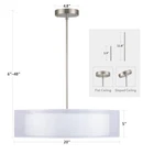 Return Policy Fast Delivery Trusted seller 3-Light Drum Chandeliers, 20" Pendant Light Fixture with 2-Layer Fabric Shade E26 Bases, Adjustable Swivel Joint Hanging Light Fixture for Bedroom Living Room Kitchen Hallway, Brushed Nickel Product Description Elegant Drum Lighting: 's drum pendant light combines a sleek brushed nickel metal frame with a 2-tier drum shade, adding timeless charm to any interior style, from classic and contemporary to industrial and modern Flexible Mounting: Easily mount this drum light on flat or sloped ceilings using its swivel-ready canopy. With the five provided down rods, you can effortlessly switch from an 8" semi-flush mount to a striking 50" pendant light Standard E26 Bases: The E26 bases of our drum light fixture support any CFL, LED, or incandescent light bulb (not incl.) rated up to 60W and are dimmer compatible for precise control over brightness and intensity Glow Anyw: With its 2-tier fabric shades, our 20" drum lighting chandelier gently softens the emitted light, providing gentle, eye-friendly illumination in your bedroom, living room, dining room, kitchen, or hallway Illuminate with Confidence: 's modern pendant light, crafted from sturdy metal and durable fabric, is designed to bring lasting brightness and enhance your living experience for years to come Shipping Returns Payment Shipping Shipping is FREE to all addresses other than APO/PO boxes in the lower 48 states. All our stock ships from US-based warehouses. Shipped via USPS or UPS (depending on location and package weight) Unless stated otherwise, all orders will ship within 24-72 hours of your payment being processed. Check our feedback to see the great reviews of FAST shipping we offer. Returns Seller does not accept returns Payment We currently accept payment via eBay managed payments only. Once payment is cleared, we will dispatch your shipment within 1-3 business days. Please refer to the "Shipping" tab for more information regarding shipping speed to your destination.