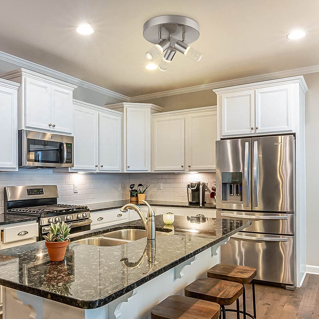 Timeless Style - Our semi flush mount ceiling light features three crystal cylinders that contain rich bubbles, adding a touch of glamour to the lighting and your space. The steel construction with brushed nickel finish will blend in nicely with almost any interior style. Modern Design - It’s always important to balance the aesthetics with functionality. This flush mount LED ceiling light can be used with a standard household dimmer (not included), so you can adjust the amount of brightness every time you turn it on. Versatile Lighting - Three swiveling heads allow for directional lighting where you need it most as well as for expressing your creativity. These ceiling light fixtures perform well in various areas, such as entryway, hallway, foyer, living room, and walk-in closet. Easy to Install - This 3-light flush mount fixture has metal back plate that works with most electrical boxes. Mounting hardware and easy-to-install instructions provided. Timeless Style - Our semi flush mount ceiling light features three crystal cylinders that contain rich bubbles, adding a touch of glamour to the lighting and your space. The steel construction with brushed nickel finish will blend in nicely with almost any interior style. Modern Design - It’s always important to balance the aesthetics with functionality. This flush mount LED ceiling light can be used with a standard household dimmer (not included), so you can adjust the amount of brightness every time you turn it on. Versatile Lighting - Three swiveling heads allow for directional lighting where you need it most as well as for expressing your creativity. These ceiling light fixtures perform well in various areas, such as entryway, hallway, foyer, living room, and walk-in closet. Easy to Install - This 3-light flush mount fixture has integrated LEDs, no need to purchase bulbs. Mounting hardware and easy-to-install instructions provided. Buy with Confidence - We always stand behind our products and provide excellent after-sale service. Should you have any question, please contact us directly via Amazon’s Buyer-Seller Messaging Service.