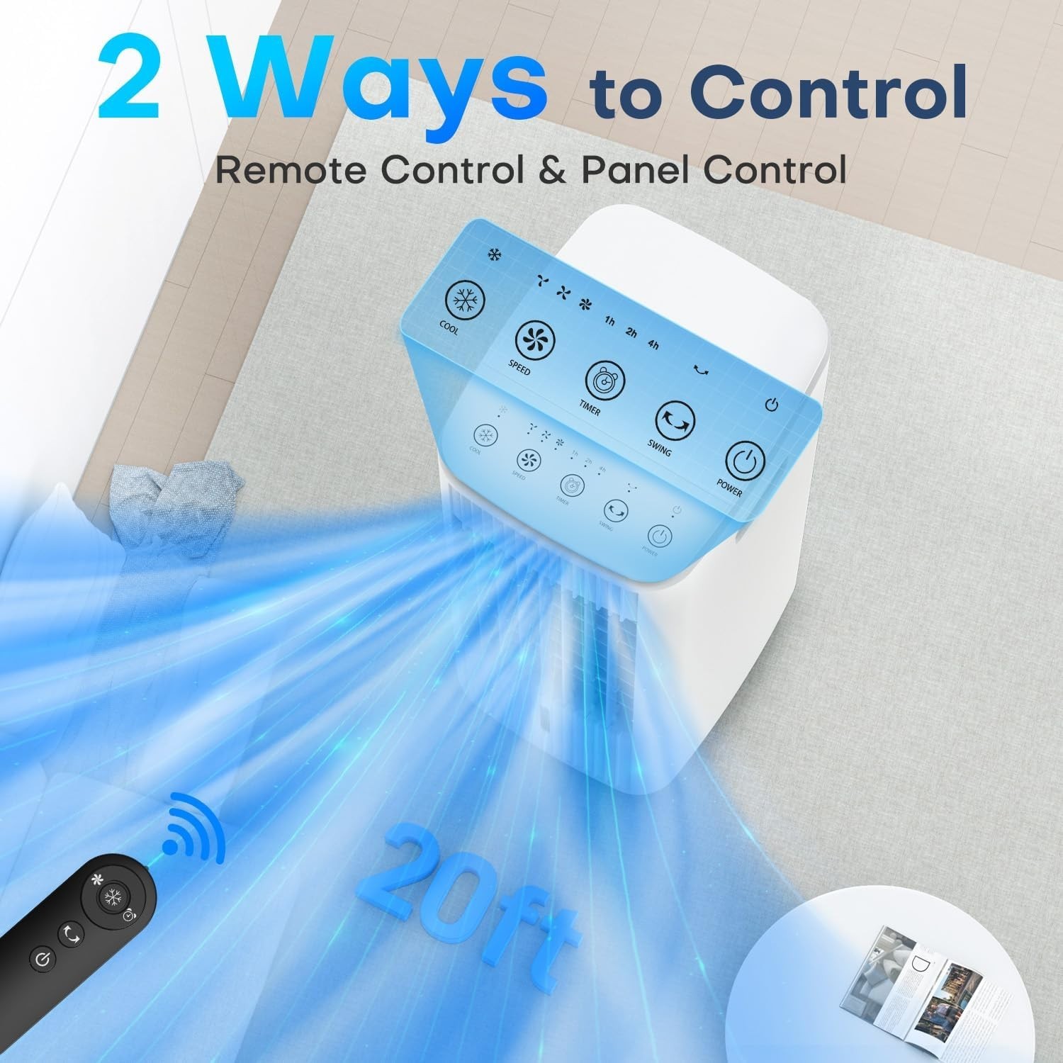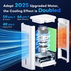 [3-in-1 Cooler] BALKO combines a fan, air cooler, and humidifier in one. Just add water and ice packs (3 included) and press the cooling button for instant comfort. Check for ice packs in the top and bottom tanks upon delivery. [Cools Up to 250 Sq.Ft] With a 25" height and 70° oscillation, it delivers powerful airflow (1500 CFM) without needing to bend over. Ideal for seniors and pregnant users. [Dual Water Tanks] Removable water tanks, cooling pad, and wheels make cleaning and moving easy. Built-in safety features include circuit protection and pinch-proof grilles. [No Installation Required] Plug-and-play with no hoses or windows needed. Uses only 60W—cuts energy use and maintenance costs. [Customizable Comfort] Offers 2 modes (Normal/Cooling) and 3 fan speeds (16–25 ft/s), suitable for sleep, workouts, or daily use. [Remote + Top Control] Easy control via remote (up to 16ft) or top panel. Clear icons make it user-friendly for all ages. [Quiet & Timed Operation] Runs quietly at