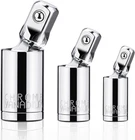 【3PCS SOCKET SET】The universal joint set includes 3 joint sockets, and the size is 1/4-Inch, 3/8-Inch and 1/2-Inch. And the joint sockets are finely processed to meet and exceed ANSI/ASME standards to ensure they will fit on any compatible tool. 【PROFESSIONAL DESIGN】Compared to other universal joint set that can only rotate 90°, our swivel socket adapter set is 360° universal rotation, making it more suitable for narrow spaces. The general joint set also adopts a spring loaded positioning ball design to ensure that the universal joint is securely locked on the tool. 【HIGH QUALITY】The material of the swivel socket set is chrome vanadium steel, with a chrome plated and polished surface, which is not easy to rust, has a beautiful appearance, and a long service life. 【WIDELY USED】The universal joint socket set can be used in narrow spaces and suitable for automobile, motorcycle, machinery maintenance and wrench socket transformation. 【OUR PROMISE】We provide perfect customer service, If you have any questions about our universal joint socket set, please let us know and we will provide you with the best solution and service until you are 100% satisfied! If you need a tool that is convenient for use in narrow spaces, the universal joint set is a perfect choice. It will make your maintenance work more convenient. As a responsible seller, our goal is to provide customers with the highest quality products and services. We are honored that you can experience our products, and we will provide you with the highest quality service. Specification : Color : Silver Size : 1/4” Long 70mm, 3/8” Long 53mm, 1/2” Long 43mm Weight : 209 g / 7.37 OZ Product Features and Advantages : ·The swivel socket adapter set comply with ANSI/ASME standards and fit on any compatible tool. ·The universal joint set is 360° universal rotation, making it more convenient and practical. ·The joint socket swivel set can maintain any angle without moving. ·The joint socket adapter is made of high-quality chrome vanadium steel, which is durable. ·The universal joint socket can securely locked on the tool and is not easy to fall off. Packaging information: 3Pc Joint Sockets 1Pc Storage Bag Our Promise: If you are not satisfied with our universal joint set, please contact us as soon as possible. We will assist you in resolving any product issues within 12 hours. Every joint sockets we sell has undergone strict quality inspection. If you want to buy our joint socket swivel set, please don't hesitate to add them to the shopping cart and buy. Finally, I wish you have a good day.