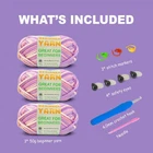 **Premium Beginner-Friendly Craft Yarn - 3-Pack Bundle (1.8 oz/60 yards each)** Discover the perfect easy yarn for your crafting journey with our specially designed beginner-friendly yarn. Each pack includes three skeins, with each skein weighing 1.8 oz and measuring 60 yards, providing ample material for your creative projects. **Why Choose Our Yarn?** Our yarn stands out from the rest due to its superior quality and thoughtful design. Made from 75% cotton and 25% nylon, this yarn offers a perfect balance of softness and durability. Unlike ordinary yarn, it is tightly spun to prevent splitting and breaking, ensuring a smooth and frustration-free experience for beginners. The clear stitch definition also makes it easier to see your progress, making it ideal for those just starting. **Exclusive Color Options** Our yarn comes in a variety of custom-dyed colors, featuring vibrant, multi-hued options that are perfect for creating one-of-a-kind projects. Each colorway is carefully selected to bring your creations to life, making every piece truly unique. **Complete with Tools, Accessories, and Tutorials** We’ve thought of everything to help you get started. This bundle includes all the essential tools and accessories, along with a basic tutorial guide, ensuring you have everything you need to bring your creative ideas to life. **Versatile Use** Whether you're crocheting adorable amigurumi animals, crafting stylish home decor, or knitting fashionable garments and accessories, our yarn is up to the task. Its versatility makes it suitable for a wide range of projects, ensuring that your creativity knows no bounds. --- This version includes the additional feature of the kit providing all necessary tools, accessories, and a basic tutorial. 【Premium Materials for Smooth Crocheting】 Beginner Yarn is crafted from a 75% cotton and 25% nylon blend;Worsted medium weight #4;Machine wash cold and dry; this high-quality, soft crochet yarn ensures a smooth and durable crocheting experience. 【Great for Beginners】Unlike traditional acrylic or wool yarn that may split,pill,fray,or snag,The easy-to-see stitches crochet yarn makes it easy to work with for those learning to crochet, avoiding splitting or breaking. Ideal for adults or kids who want to learn to crochet. 【Crochet Starter Kit】This crochet yarn set includes 3 skeins of cotton-nylon blend yarn, 1.76 oz / 50 g, 60 yds / 55 m per skein; and a 4.0mm crochet hook, 3 stitch markers, 4 safety eyes, and a plastic needle, providing everything needed to start crocheting immediately. 【Unique Colors & Versatile Yarn】Choose from a stunning palette of 23 yarn colors, featuring 11 solid shades and 12 variegated blends. These colors are carefully selected to ensure your projects have a unique and eye-catching appeal. Whether you're making amirugumi toys, blanket, or home décor, the vibrant hues bring your creations to life. This versatile yarn is perfect for beginners exploring different styles and projects, allowing for endless creativity in crocheting and knitting projects. 【Knitting Gauge】 Knitting gauge of 4” x 4” (10 cm x 10 cm) 20 sts and 28 rows with a 5.0mm (U.S. 9) knitting needle 【Crochet Gauge】 Crochet gauge of 4” x 4” (10 cm x 10 cm) 13 sc and 14 rows with a 4.5mm (U.S. H-8) crochet hook 【Perfect Gift】multicolor beginner easy yarn kit is a perfect gift for craft lovers, offering everything needed to start a new, rewarding hobby! It's always a fun adventure to crochet patterns with our beginner yarns.Let's just enjoy the endless possibilities!
