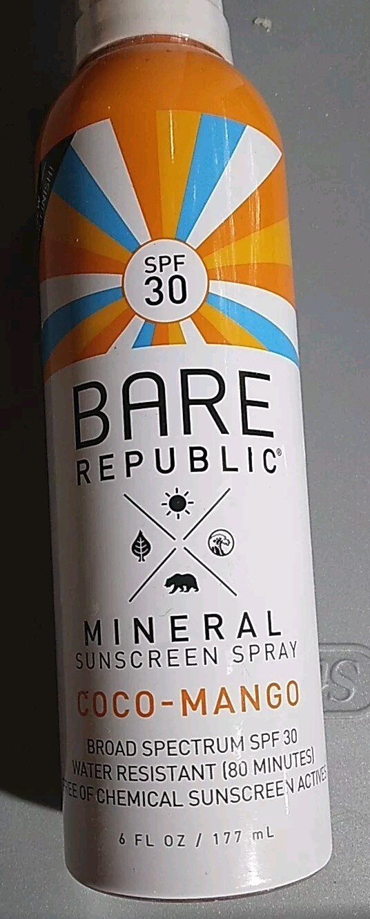 Bare Republic SPF 30 Coco Mango Scent Sunscreen Spray 6oz (Lot of 3)
