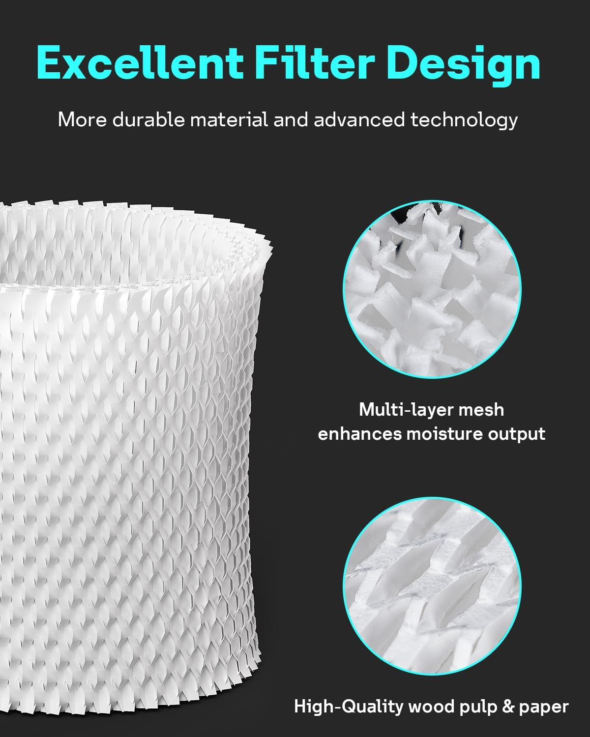 【PERFECT FIT】: Leemone humidifier replacement filters work seamlessly compatible with Canopy Bedside & Nursery Humidifier ONLY. They efficiently treated large particles, providing a cleaner and enhanced humidification experience 【PREMIUM QUALITY MATERIALS】: This humidifier filter is crafted from high-quality paper, and wood pulp materials. It maximizes water absorption, ensuring optimal humidity output for creating a comfortable home environment 【EXCELLENT FILTRATION EFFICIENCY】: Our advanced humidifier wicking technology changes the filter to a brownish color, indicating that it's working! Our replacement humidifier filter is made of 8-layer mesh paper, which effectively filters out hard minerals in the water. This helps improve sleep quality and creates a more comfortable environment by reducing dry air 【WARM TIPS】: For optimal performance, we suggest replacing the humidifier wick filter every 6 weeks, based on your usage and environment 【NOTE】: Any residue or discoloration on the filter is a result of impurities in the filtered water. Our tests have confirmed no impact on air quality or humidification efficiency, so use them with confidence Product Description Promot Quality Sleep Ease nasal congestion for better sleep Moisturizes Skin Quality humidified air to prevent dry skin Improve Quality Of Life Quality humidified air prevents nasal congestion & dry throat What's the benefit of using a humidifier filter? Our filters make sure the right amount of moisture is added to your air, boosting humidity to help you sleep better, keep your sinuses healthy, and create a happier home for you and your loved ones. Which humidifiers does this fit? Our premium Bedside filters are compatible with Canopy Bedside & Nursery Humidifiers. How often do I need to replace my filter? Replace your filter when it starts to harden and turn yellow. If you have hard tap water, its minerals can shorten the filter's lifespan compared to households with soft water. How can I maximize the life of my filter? You can make your filter last longer by using distilled, bottled, or filtered water from your tap. Also, flipping your filter over daily helps keep it evenly moist. How do I install a new filter? First, pre-moisten the new filter by running it under water until it's soaked. Then, remove the cover of your machine, take out the old filter, and replace it with the new, pre-soaked one.
