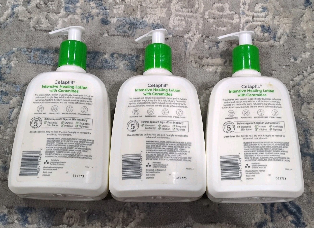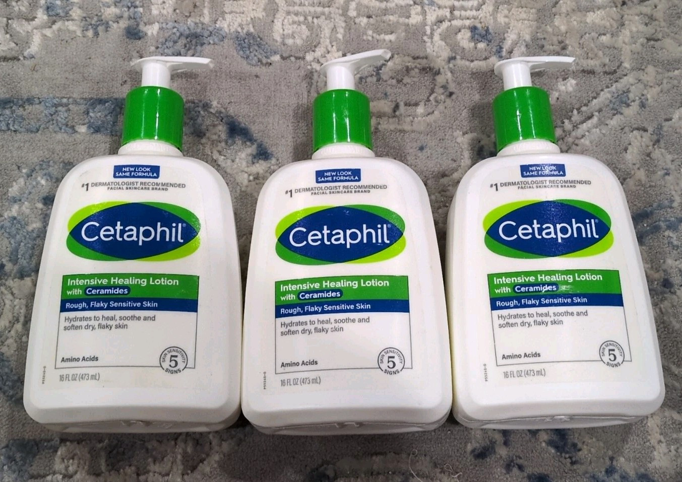 LOT (3) CETAPHIL INTENSIVE HEALING LOTION CERAMIDES DRY ROUGH FLAKY SKIN 16 OZ.