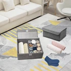 How many times you feel that your underwear, sock and dresser drawer is messy but have less time to tidy it? Why not organise your small pieces of jewelry, socks and other small gadgets at once? This drawer organizer is the superb solution to organise drawers for you, it can make sure that all of your favorite items keep well equally, and maximize storage space for socks, gloves, underwear and scarves, makes them become neat and tidy, so you don't need to worry the clutter of them from now! Color: Grey Material: durable linen cloth & plastic panels Specifications: 13 Cells ( 1 Big Cell + 12 Small Cells ) Decent Size: 31*26*11cm/12.2*10.2*4.3in Packaging: 3 Pack Closet Cabinet Organizer Why Choose Our Drawer Organizer? Save Your Space This cloth drawer organizer has many cells that make it easy to organize your socks.bra and panties. This closet organizers storage making your life more convenient and freeing up space in your closet. Washable - Easily Cleaning Made of high-quality non-woven fabric, our underwear drawers organizer for clothes are convenient and durable, easy to clean just need to hand wash or wipe clean with a damp cloth and allow air dry. This Drawer Divider Set offers you 2 kind of storage space The storage box can store your bras, underwears, socks, gloves and other small personal items, etc. Keeping your desk, bookshelf, dresser, closet, or anywhere you want to place in good order. Large Stackable Storage Organizers with Lid This underwear and bra organizer has two compartments, sort your underwear, bras, socks, neck ties and scarves with closet organizer quickly and neatly, fit for bras of all sizes. Keep your room tidy and order with this stackable storage bins! 【Packaging & dimensions】3Pack Closet Underwear Organizer (31*26*11cm/12.2*10.2*4.3in), 2 types storage space designs to meet your different organization requirement in life , 12 cell (socks and underwear organizer or ties),1 cell(Bra organizer). 【Versatile closet organizer】you can use one as wardrobe organiser for storing socks, underwear, bras, handkerchiefs and thin scarves, another one for dresser drawers to store jewellery, nail polish, lipstick, other bits and bobs etc, make your drawer is no longer chaos, become tidier and neater. 【Easy to sort & Dust-proof】The individual compartments keep things neat, orderly and in place, allowing you to quickly find exactly what you need. Lid can keep your items clean, also can well protect your items from moths, damp and dust, keep your home well-organized. 【Easy Clean & Durable】Our upgraded foldable drawer storage box is made of high quality durable linen cloth and PP panels. This drawer storage box is washable, moisture-proof and breathable. Practical Velcro buckle to prevent internal clothes from falling. 【Folding & Save Space】Our organizer Box is collapsible for easy storage, can be folded flat to save space when not in use. The sock organizer is perfect to save space for your closet, drawer, wardrobe and cabinet, it massively improve the utilization of your drawer space.