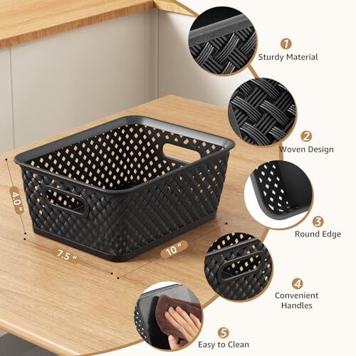 Return Policy Fast Delivery Trusted seller Organization and Storage 3 Packs, Plastic Storage Bins Organizer Bins, Woven Baskets for Storage, Plastic Baskets with Handles Storage Baskets for Organizing, Basket Organizer, Medium, Black Product Description Sturdy & Durable: Our basket is made of high quality PP plastic, environmentally friendly, non-toxic and tasteless, harmless to the human body. This basket is perfectly safe as a fruit/vegetable/food storage basket. With tough performance, it can withstand long-term use. No matter how long you use it, it won't change shape. This medium basket is a great choice for you to organize your life. Storage & Organizing: Available in two sizes of black storage basket, enough to store anything you want to organize without taking up too much space in your bedroom, kitchen or closet. Sorting, storing and organizing clothes, toys, and other rarely-used items with our plastic storage bins. It's very useful in many places, such as kitchen, bedroom, bathroom, office and more. Return a tidy room to you! Multi-Purpose Use: Function as drawers when used with a organization bins. Plastic baskets set provides perfect, lightweight way to accessorize, organize, and store while keeping items tidy and organized at home, office, loft or other dwellings. It is a great way to store snacks, books, toiletries, stationery, clothing and other items. This will save you time looking for things when you take them. Perfect Size: T are two different sizes available, S and M. Perfect size to help you save space and keep your home organized. Different sizes of black baskets give you a variety of options for storing different things. You can choose the most suitable size according to your storage needs. Here is "medium" - Mearsures 10 x 7.5 x 4 inches. Pack of 3. Customer Service: 18 months after-sales service, 100% money back. If you have any dissatisfaction with our medium storage basket, please feel free to contact us and we will provide you with replacement or refund. If you have any questions, 24hs instant response is waiting for you. We are committed to our 100% customer satisfaction. What are you waiting for? Try it today! Shipping Returns Payment Shipping Shipping is FREE to all addresses other than APO/PO boxes in the lower 48 states. All our stock ships from US-based warehouses. Shipped via USPS or UPS (depending on location and package weight) Unless stated otherwise, all orders will ship within 24-72 hours of your payment being processed. Check our feedback to see the great reviews of FAST shipping we offer. Returns Seller does not accept returns Payment We currently accept payment via eBay managed payments only. Once payment is cleared, we will dispatch your shipment within 1-3 business days. Please refer to the "Shipping" tab for more information regarding shipping speed to your destination.