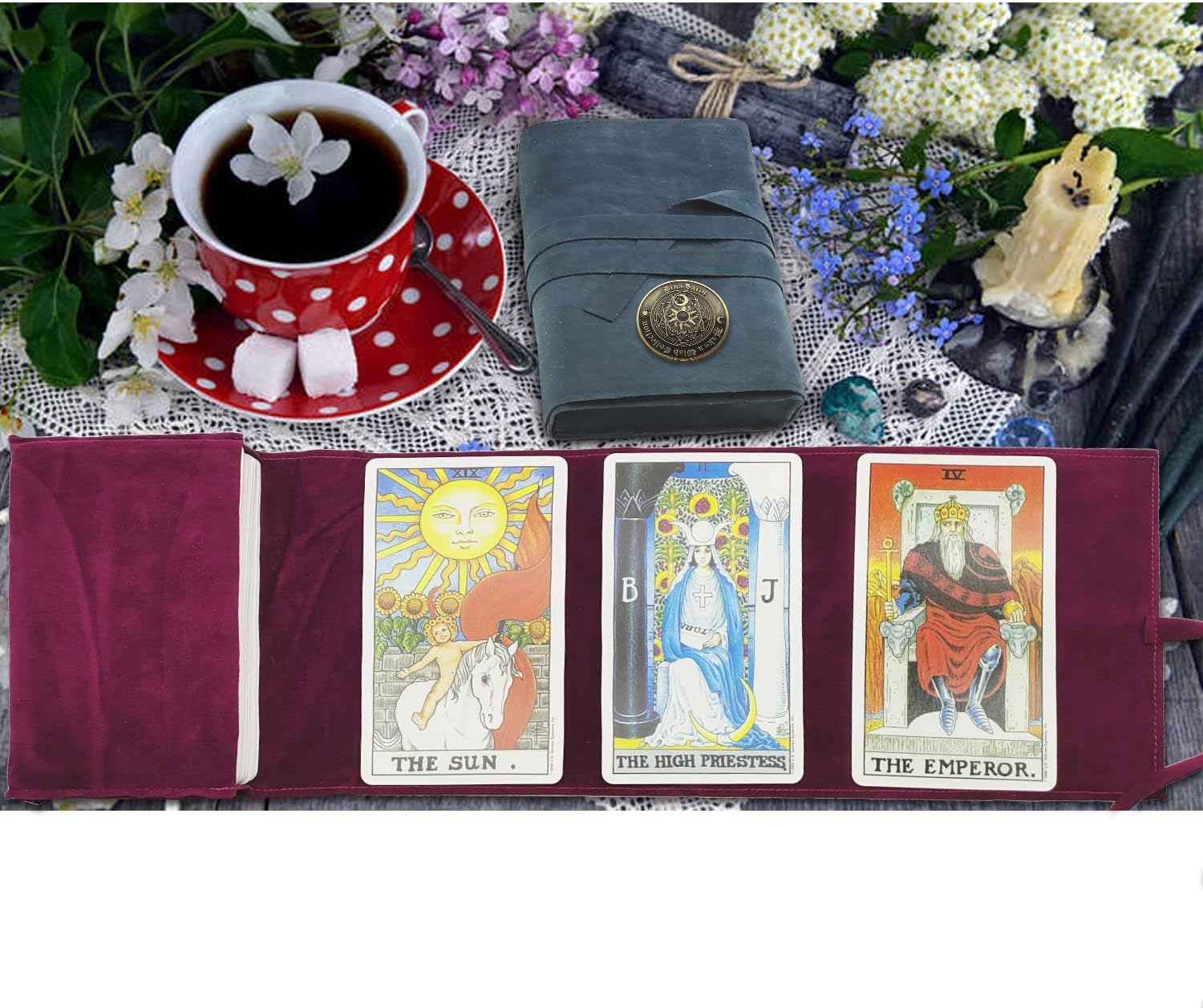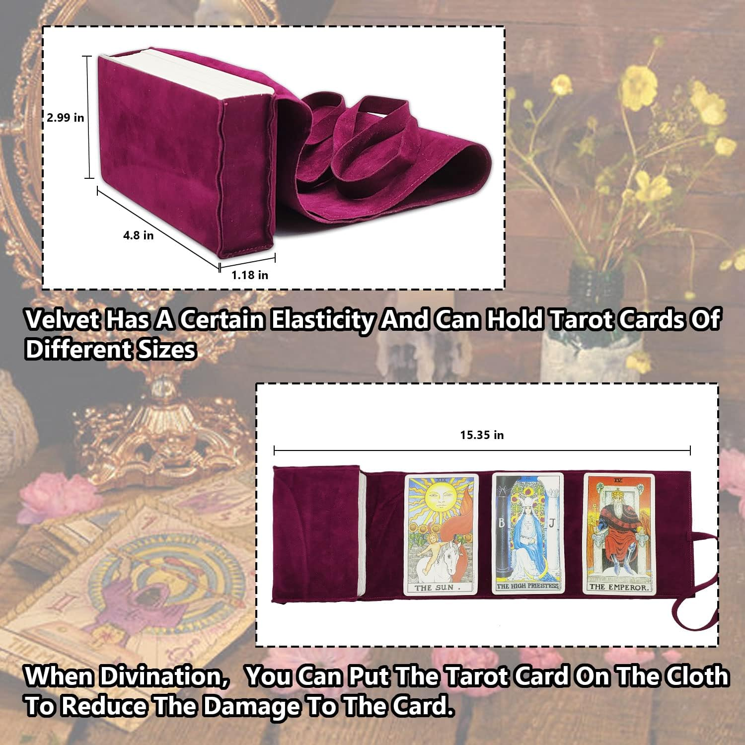 You Will Get - This set includes a grey velvet tarot card bag, a white velvet tarot card bag and a decision maker coin, giving you everything you need to safely store and use your tarot cards Velvet Tarot Card Bag - The elastic and soft velvet material used in these bags will hold cards that are slightly larger than the bags themselves, as well as other divination tools like crystal stones, dice, keeping them protected and secure. Tarot bag size about 2.99 * 4.8* 1.18 inches Tarot Divination Tool - When you need help making a choice during a divination, the included decision maker coin can help you by eliminating negative energy and bringing good luck. There are 12 constellations on one side of the coin, praying to your constellation will bring you good results Easy to Carry - These light and compact bags are perfect for everyday use or for taking your tarot cards and divination tools on-the-go. They're machine washable for easy cleaning and maintenance Tarot Accessories - This is nice for tarot fans. It is easy to carry and protect your tarot cards from damage, very suitable for friends, family members who often use tarot cards Product Description Storage bag specially designed for tarot cards A storage bag specially designed for tarot cards, made of velvet material. The velvet we use is elastic and soft to the touch, so it can hold cards that are a little bigger than it is. You can also use it to store other divination tools, such as tarot crystal stones , astrological dice, Rune charms and other metaphysical supplies. You will get A purple velvet tarot card bag. A dark blue velvet tarot card bag. A lucky wishing coin. Light and easy to carry These two tarot card bags are very light and will not take up space, whether you use it as a daily tarot card storage or a display cloth for tarot card divination on the go, it can do it all. This storage bag will protect your tarot cards from damage, and you can take them with you whether you are traveling or going out. Why choose us? Each velvet storage bag is inspected to ensure it is not faded, sewn correctly, and damaged. We have designed a variety of colors to suit every style of tarot deck. In order to better use tarot cards and enjoy divination, the storage bag is also designed with a display position that can place more than three tarot cards.