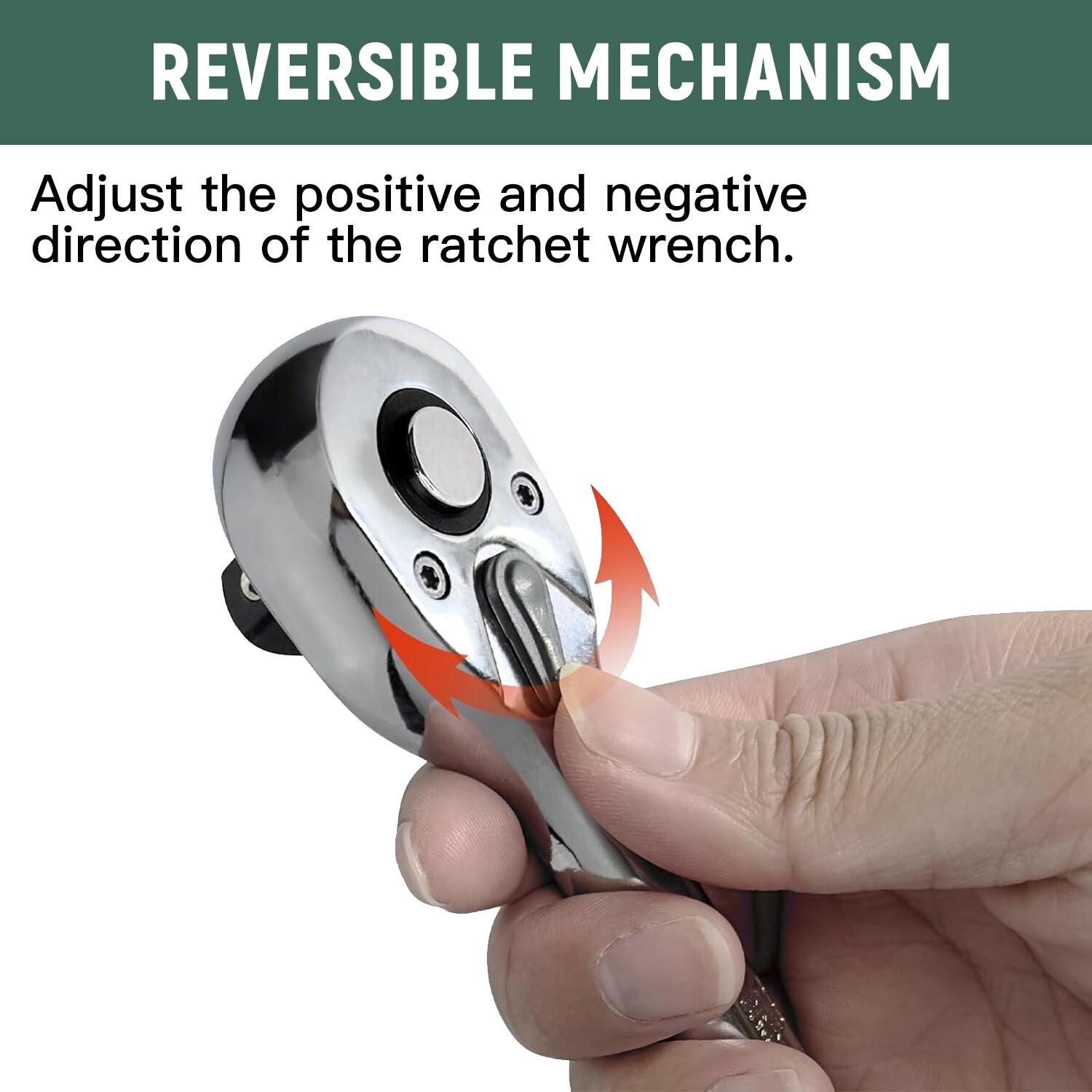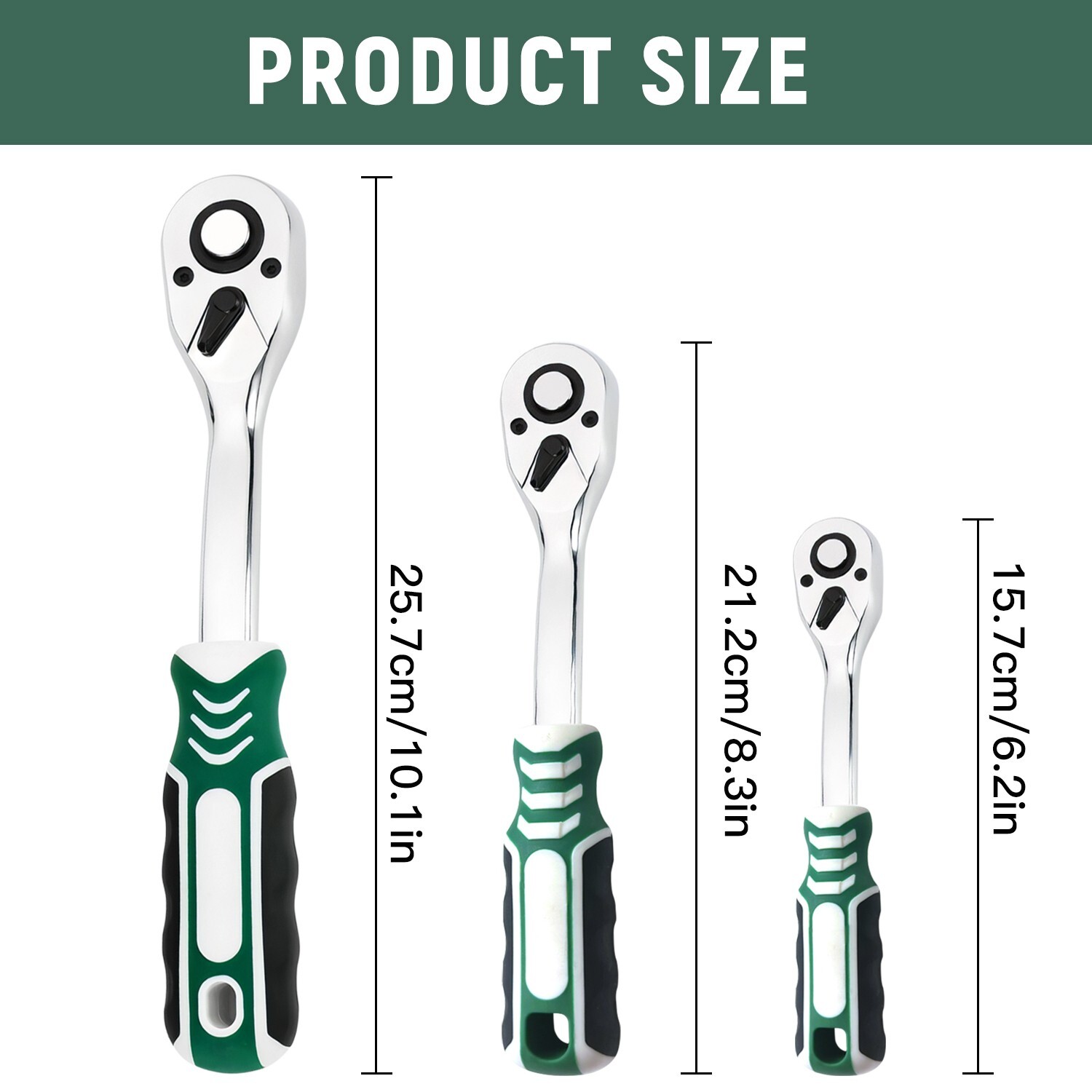 Features: Made from Hardened treated Chrome Vanadium steel alloy,durability and corrosion-resistant. 270-degree swivel head lets you approach your work from any angle.72-tooth gear produces a working swing arc of just 5 degrees. With our easy-switch head, you can tighten or loosen a bolt in efficiently & ergonomically.Secure comfort grips allow you to work easy. Quick stripping function, the sleeve hanging is more reliable, avoiding the socket head wear and easy to fall into the maintenance space. Suitable for factories, production lines, repairing shop, auto repair factory, 4S shop, personal car modification etc. Specification: Item Weight: 2.47 pounds Product Dimensions : 11.3 x 6.3 x 2.5 inches Material: Chrome Vanadium Steel Size & Total length: 1/4 inch drive: 10.04 inch / 25.5 cm 3/8 inch drive: 7.99 inch / 20.3 cm 1/2 inch drive:6.10 inch /15.5 cm Package Including: 3 pcs x Ratchet wrench Notice: In case the item is defective, please inform us within 15 days of receipt, we will arrange reship or refund. Buyers have to pay for the return cost and we will pay the cost for resend. If you are unsatisfied with our item or service, please contact us before leaving any feedback. We are committed to resolve all issues in a friendly and satisfactory manner. We always reply to messages within 2 business days (off-duty at weekend).If you do not get a response from us, then please check your junk or spam mailbox.