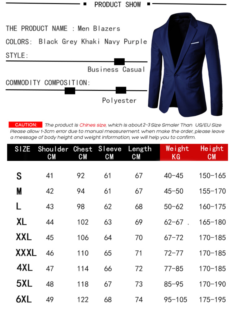 This suit is a classic design for designers. It is a very elegant men's suit. I believe you will love this wedding suit. This product has two styles : three-piece set and two-piece set . The three-piece set includes jacket vest and pants, and the two-piece set only includes jacket and pants, without vest. You can choose the appropriate suit according to your needs. Note: We sell ASIAN SIZE is about 2-3 size SMALLER than US,UK,AU,EU size.Please choose the size according to our size form.All the dimensions we have personally measured and reality try. If you are not sure about the size, please send us a message to tell us your height and weight, and we will help you to confirm the size.Think you for buying ! Men's Suit Slim 3-Piece Suit Business Wedding Party Jacket Vest & Pants Features: 1 .It is made of high quality materials,durable enought for your daily wearing 2.Stylish and fashion design make you more attractive 3.Perfect Match with your favorite shorts,leggings, black , denim jeans, etc 4.Great for Daily,Casual, Business,Wedding,Party. I am sure you will like it! Product information: Season:Spring,Autumn Gender:Men Occasion:Daily,Business,Wedding,Party Material:Cotton Blend Pattern Type:Solid Style:Casual,One Button Sleeve length:Long Sleeve Fit:Fits ture to size Thickness:Standard How to wash:Hand wash Cold,Hang or Line Dry What you get:1 PC Men Coat +1 PC Vest +1 PC Pants Or 1 PC Men Coat+1 PC Pants ,men business blazer ,full men's suit suits pants for men ,suit men xxxl ,suits for men ,elegant man dress ,business suit men 2022 2 pieces ,Male suit, elegant man suit ,Set men ,luxury men's suits ,men's formal suit 3 pieces ,blazers sets ,men suit set ,pant and blazer for men ,man wedding suits set ,men business blazer ,full men's suit