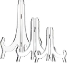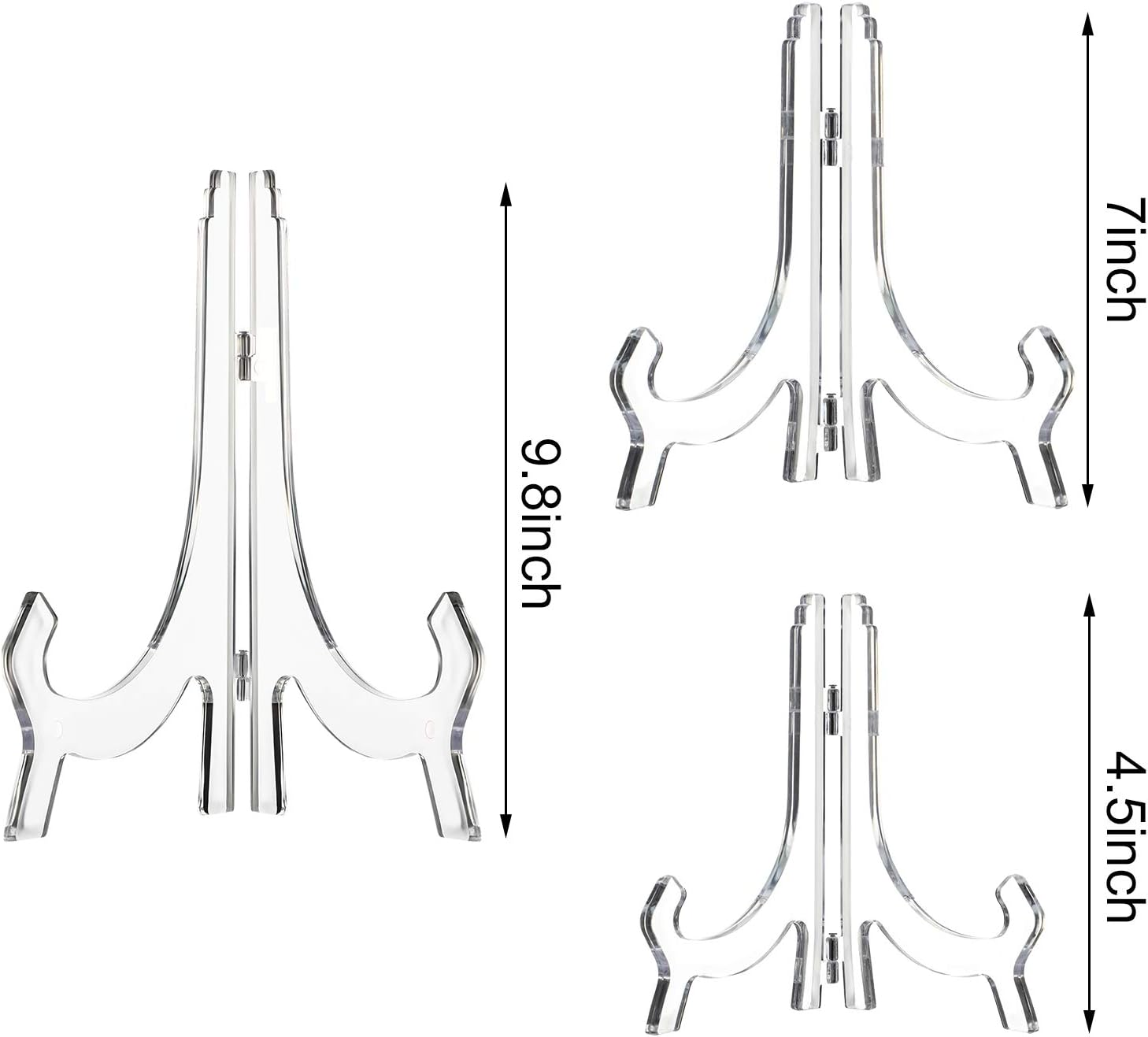 Comprehensive Groups: 3 pieces clear plastic easels totally, 3 size: 4.5 inches, 7 inches, 9.8 inches, enough quantity for you to hold different sizes items Plastic Material: 4.5 inches can hold item below 180 g, 7 inches can hold item below 220 g, 9.8 inches the maximum load weight is 240 g; these display stands are made of durable plastic; They are lightweight and hold the product well; They are suitable for every need and location; You can flexibly adjust the extension of the display stand to safely display your items based on the size and weight of the items you need to place Hold Many Items: this plate holder can act as a picture easel stand, phone pad holders and for displaying all types of collectibles; Also can hold medals, cosmetics, buttons, pocket watches, books, post cards, CDs, sports cards, place cards and advertising boards Specifications: comes with 3 size: 4.5 inches, 7 inches, 9.8 inches tall display stand, totally 3 pieces clear plastic easels, please check the item you want to display before you purchase Applications: can be applied at home, art class, book store, wedding, various parties and businesses where products need to be shown to the public Product Description Whether you want to display photos of your friends or families, are setting up a marketing or advertising booth and want to highlight products or services, or just want a compact and streamlined way to show off plates, there’s nothing that offers more trendy versatility than a Acrylic Display Stand.