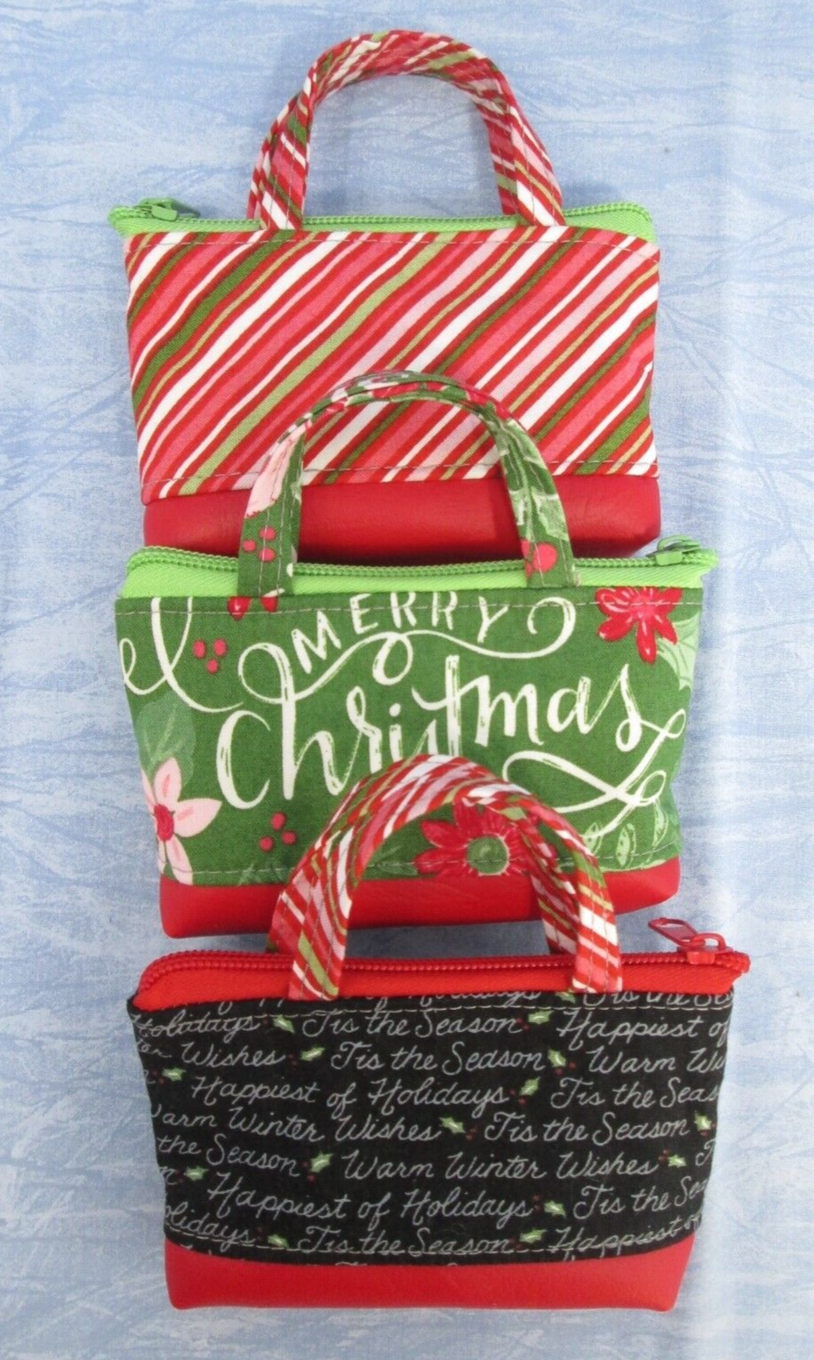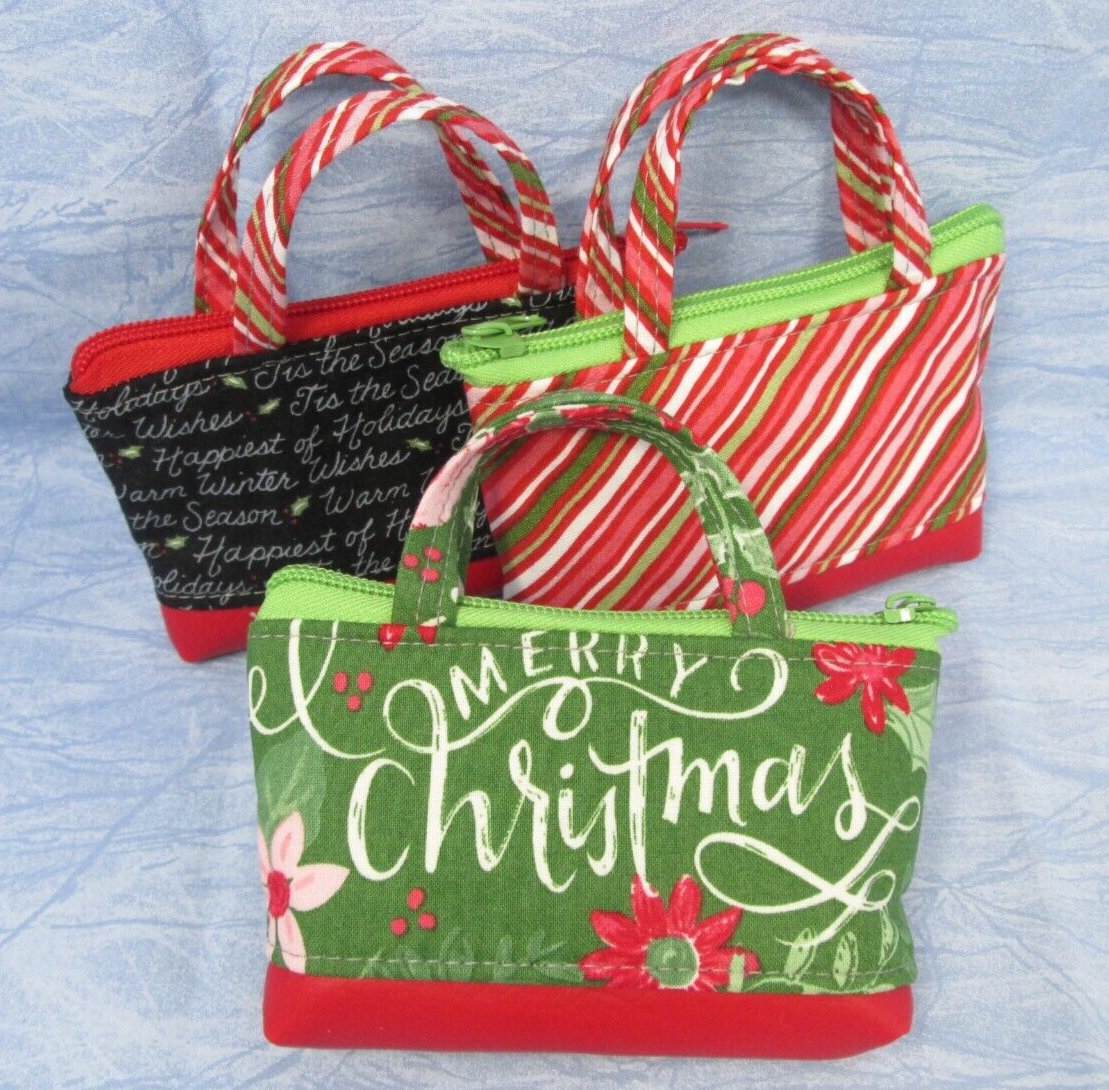 Set of 3 mini sized tiny tote bags Great for Christmas stocking stuffer gift Fits gift cards, chapstick, small accessories, and more Handcrafted in my Wyoming studio Measures about 4" x 3" x 1.5" Please see photos and message me with any questions Check my shop for more great items, sales, and bundle deals