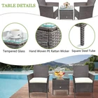 Practical & Stylish: The patio sets’ woven rattan elements and curved edges design create a simple, stylish appearance,which is a good choice for patio, porch, backyard, poolside, garden and other suitable space in your home.The 3 pieces patio furniture sets provides a relaxing area while decorating your outdoor space. Sturdy & Durable: Compared to other patio chairs set of 2, the outdoor patio furniture sets use compact woven PE rattan and thick steel frames to ensure strength and long life. The sturdy construction and durable rattan are strong enough to withstand rain and wind for long periods of use. Pretty Comfortable: The cushions on the patio chair set are made from a waterproof soft upholstery fabric that is easy to clean and maintain.Two thickened high-density soft sponge cushions also provide the comfort you need. High Quality Material: The powder coated steel frames are rust resistant and the high quality weather resistant PE rattan won't fade. Each patio furniture seat can support up to 330 pounds.The table in the patio set is made of high quality tempered glass, which is strong yet lightweight and easy to clean. Easy to Assemble: The 3 pieces patio furniture sets is easy to install.To ensure that you can install this outdoor furniture quickly, it comes with full assembly tools and instructions.The Patio Set is great for a small garden or balcony and provides a relaxing place to enjoy time outdoors. Are you looking for a suitable outdoor patio chairs set of 2 for you and your family, relatives and friends? Maybe JUMMICO patio furniture set is a good choice for you. Benefit from the 3 pieces patio furniture set close to the natural rattan elements and simple & stylish design, this outdoor patio furniture set can be well integrated into the natural environment, adding a quaint, natural flavor to your garden. JUMMICO patio furniture using premium rattan compact weave covered in a sturdy steel frame surface to resist high temperature and humid weather conditions, to ensure that this outdoor furniture will not fade, cracking and other quality issues after a long period of time using. Outdoor patio chairs dimensions: 21.5x19.5X33.5 inches. Patio Table dimensions: 15.75x15.75x17.75 inches. Features: Benefit from the simple and stylish appearance design,the patio furniture set is suitable for use in a variety of outdoor scenarios, such as patios, porches, decks, pools, lawns, gardens. The patio furniture Set's cushions use a soft high-density sponge to provide a comfortably cushioned seat that is spacious and comfortable for 2 people. The patio chair covers are removable for easy cleaning and maintenance. The patio furniture set's tabletop is made of high quality tempered glass for drinks, food and other beautiful decorations. And the premium rattan material in the outdoor wicker chair is suitable for all kinds of outdoor environments. With installation tools and instructions, thoughtful after-sales service. Specifications: Material: PE rattan, steel Patio chairs Dimensions: 21.5”(L)x19.5”(W)x33.5” (H) Table Dimensions: 15.75”(L)x15.75”(W)x17.75”(H) Lawn chairs weight capacity: 330lbs Table weight capacity: 100lbs Package includes: 2 patio chairs 1 patio table 2 soft sponge cushions Complete installation tools Assembly instructions
